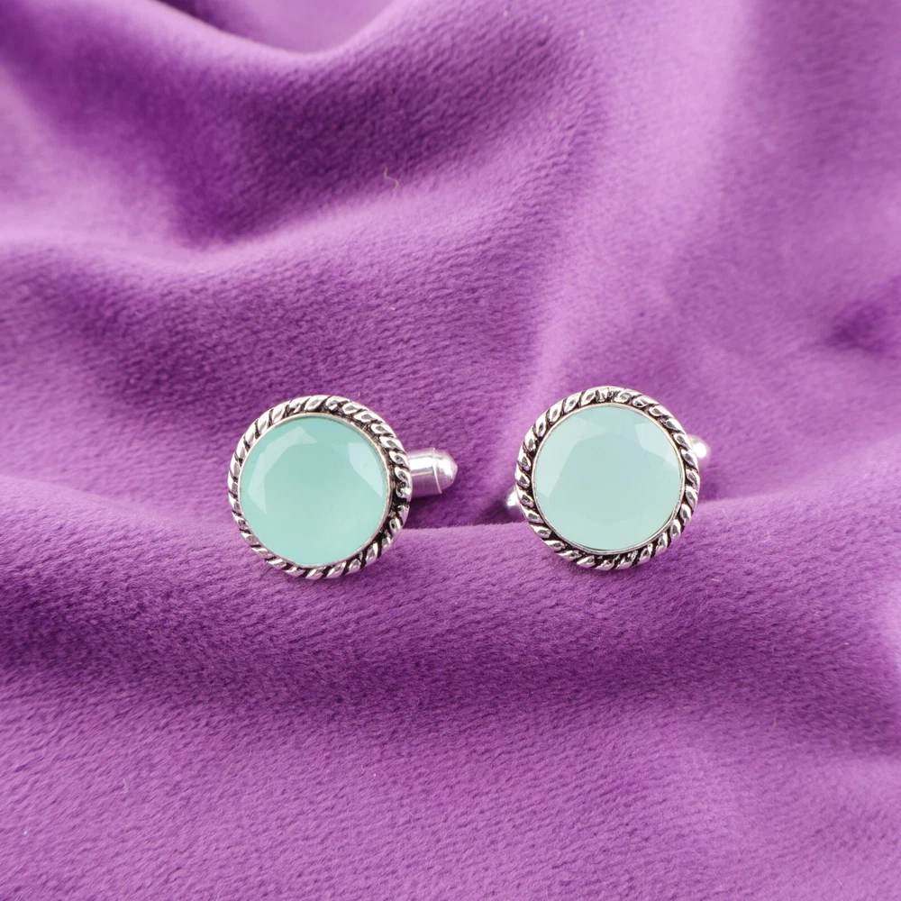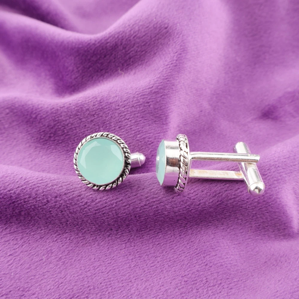 Welcome To Our Shop Gempires ------------------------------------------- Looking for something that complements your Elegant style? Check out this trendy 925 Sterling Silver Aqua Chalcedony studded Cufflinks that will elevate your fashion quotient. 925 Sterling Silver Aqua Chalcedony Gemstone Blue Valentines Cufflinks Jewelry Check My Other Cufflinks Listings : Click Here SKU: CL-3-19 Gemstone: Aqua Chalcedony Stone Shape: Round Metal : 925 Sterling Silver Length: 0.51 Inches ___________________________________________________________________ Shipping Handling - Free Standard Shipping all over the world Handling Time - 2 to 5 BUSINESS Days Delivery Time - 7 to 20 Days ( Various on destination ) _________________________________________________________________ Returns - 1.We provide a 100% Money Back Guarantee, excluding shipping costs, within 30 days from the date of item receipt. 2.The item must not be altered or damaged in any way shape or form. 3.Upon receipt of the aforementioned items, your payment will be promptly refunded. 4.Please be so kind as to contact us via email in order to acquire comprehensive return instructions before proceeding with the return of the merchandise. 5.Kindly be advised to allocate a maximum period of 1 business day for the processing of all returns, in order for the appropriate credit to be applied. 6.Sizing does not affect the return policy. _________________________________________________________________ FAQ's - Q.1 ARE THE ITEMS YOU ARE SELLING BRAND NEW? We exclusively offer brand-new products, refraining from the sale of pre-owned jewelry. Our entire jewelry collection is composed of 100% natural, conflict-free pieces. We do not engage in the trade of imitation or lab-grown gemstones and diamonds. Q.2 WHAT ARE YOUR BUSINESS HOURS? we operate 24x7 as we have a dedicated team who works in different shifts to deliver the services to our valuable customers. ________________________________________________________________ Gempires is committed to delivering customers an unparalleled experience through the provision of exquisite handmade jewelry, meticulously crafted to uphold the most exacting standards of quality. Our operations encompass dual roles as both discerning connoisseurs and skilled artisans within the realm of jewelry making. We proudly hold an extensive proficiency in the fine art of enhancing gemstones, allowing us to harmonize them seamlessly with diverse aesthetic inclinations. We are delighted to extend to you the privilege of curating your very own jewelry collection. This collection will be graced by the presence of genuine and splendid natural gemstones, each possessing an innate authenticity and beauty that is truly unparalleled. **** STAY BLESSED ALWAYS*****