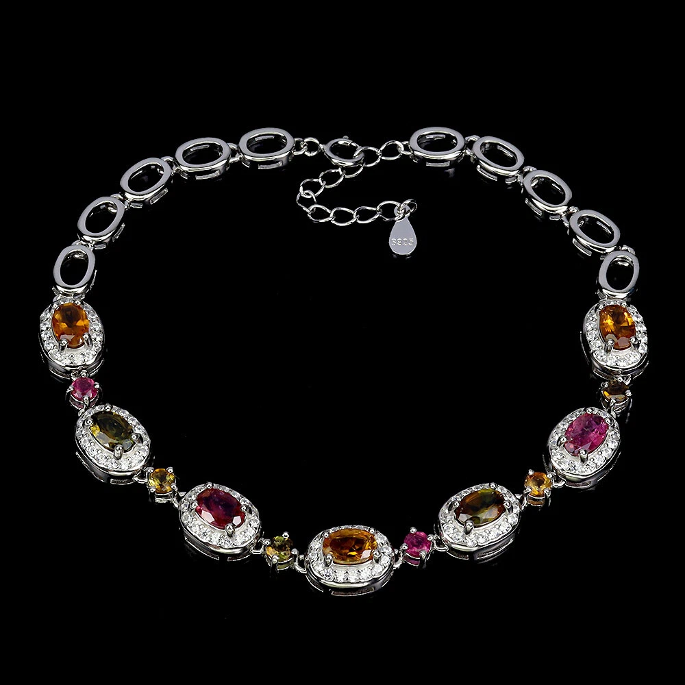 925 Sterling Silver Bracelet Oval Tourmaline Natural Gemstone Jewelry 7.5 Inche