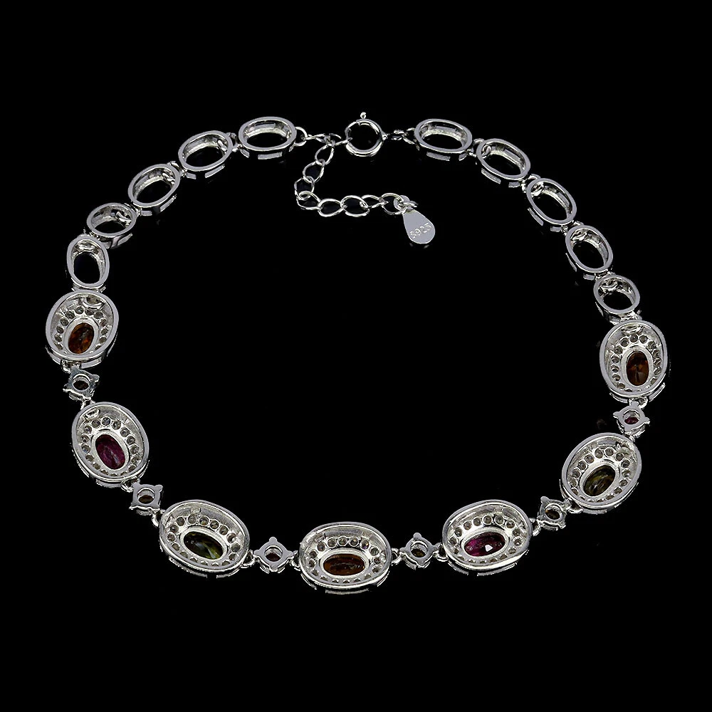 Main Stone: Tourmaline Base Metal: Fine Silver Material: Gemstone Occasion: Birthday Diamond Color Grade: D Total Carat Weight: 9.42 gram Metal Purity: 925 parts per 1000 Color: Multi-Color Country/Region of Manufacture: Thailand Plate: 14k White Gold Type: Bracelet Number of Diamonds: 1 Chain Type: Curb Link MPN: Does not apply Metal: 925 Sterling Silver Luster: Precious Country of Origin: Brazil Style: Tennis Product ID: BA2403110148 Main Stone Creation: Natural Setting Style: Cluster Theme: Fashion & Costumes Cut Grade: Excellent gtin13: Does not apply Closure: Lobster Hardness: 7 Necklace Length: 7.5 Main Stone Shape: Oval Cut Number of Gemstones: 1 Main Stone Treatment: Unheated UPC: Does not apply Brand: Egemdiamond Main Stone Color: Multi-Color