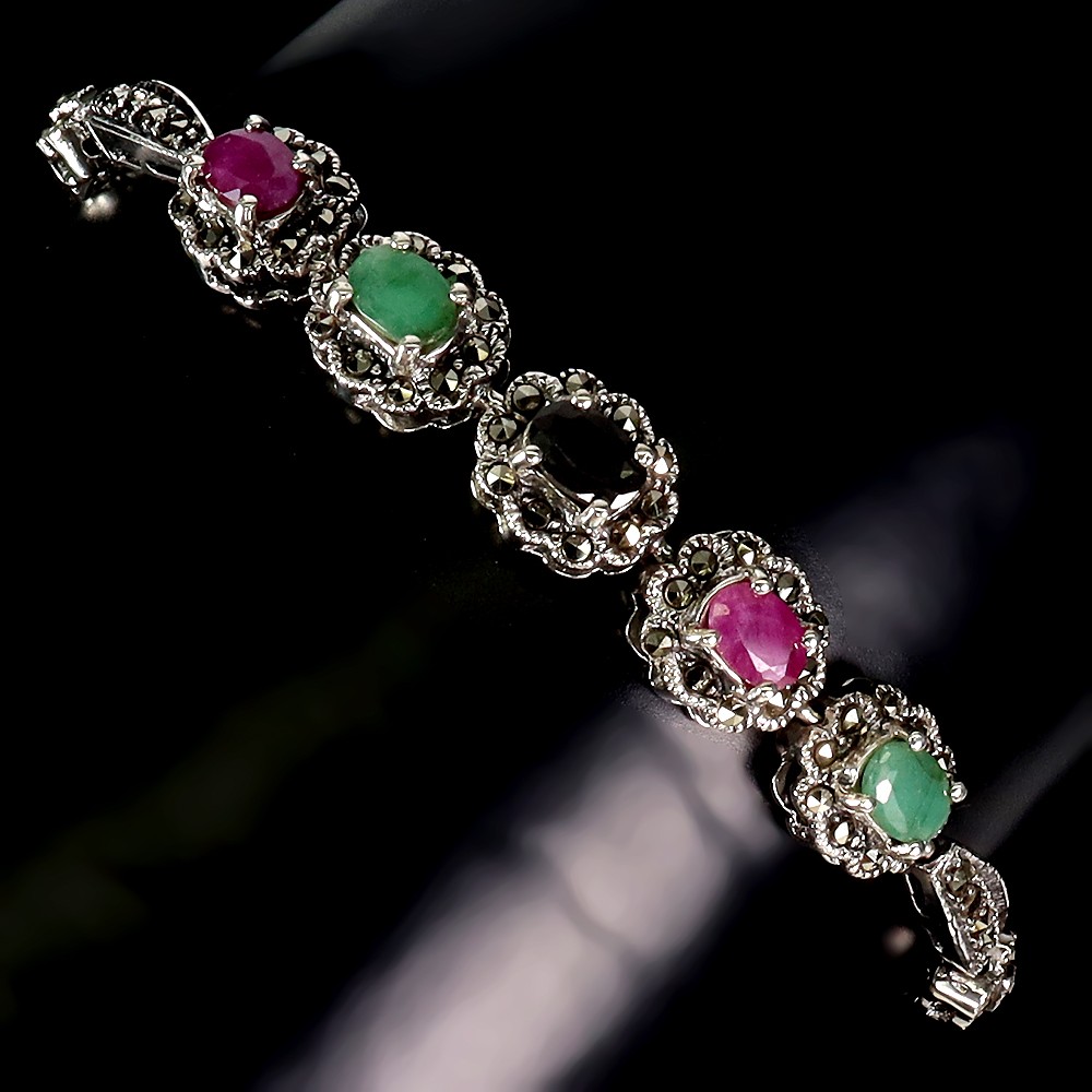 925 Sterling Silver Bracelet Oval Ruby Emerald Sapphire Gemstone Jewelry 8in PRODUCT ID BA2503050060 PRODUCT TYPE Bracelet TYPE OF METAL 925 Sterling Silver PLATE Ring size/Length (inches) 8 MAIN STONE Ruby OTHER GEMS Emerald, Marcasite, Sapphire TOTAL weight 17.22 gram (total weight of silver + stone) DIMENSION * STONE 6.0 X 4.0 MM. * MAIN STONE SHAPE Oval Cut MAIN STONE COLOR Top Rich Red Pink CLARITY/GRADE Opaque LUSTER TREATMENT Heated ORIGIN Africa HARDNESS 9 IF very high quality & Free from inclushions. VVS high quality with very slight inclushions. SI1 Good Quality with slight inclusions visible to the naked eye. SI2 include becoming prominent to the eye. I included. "Delivering excellent with eBay" we accept: PayPal payment which we prefer. FOR US BUYER >>>> PLEASE READ We are genuine seller from THAILAND. All products are originally 100% manufactured in THAILAND. Every items are 100% exported directly from THAILAND. However, we use shipping provider 'Webgistix' who is a US distributor. The items will be allocated from Webgistix's distribution office in Las Vegas, NV by USPS. Please understand that the tracking status will show starting from Las Vegas when you track the items. Feel free to ask for more details. We ship item(s) from Thailand to Worldwide in 24 hr. ( in working day ) after the payment was cleared. $10 - flat rate for a registered airmail, takes 20 - 40 days delivery. Thailand Post stops the service to Latvia, Lithuania, Malta, Moldova, Estonia, Georgia and Israel. Fedex cost up on destination with insure and online tracking. Destinations Asia NORTH AMERICA, CANADA EUROPE (WEST) EUROPE (EAST), SCANDINAVIA, MIDDLE EAST SOUTH AMERICA, AFRICA FEDEX EXPRESS (minimum) $70 $70 $70 $80 $80 Fedex rate will be charged by weight and destination area. A combine package is limited at 10 items within 10 days. Do not send your payment directly, just contact us to request total when you finish bidding (ebay cannot automatic combine items). Any single item weigh over 300ct is not eligible to combine. Buy over US $999 in one payment (10 items within 10days), Get Free FedEx shipment. TAX/CUSTOM: Custom fee is out of seller control. Buyer is responsible for the cost at arrived. Please give us an opportunity when you have questions with item received. Buyer can make agreement on discount or return the shipping in case of damage item. Seller is located in Thailand. So please contact seller for the instruction before return any item. Your communication is most important to solve the problem. International buyers note: Import duties, taxes, and charges are not included in the item price. These charges are the buyer's responsibility. Please check with your country's customs office to determine what these additional costs will be prior to bidding/buying.