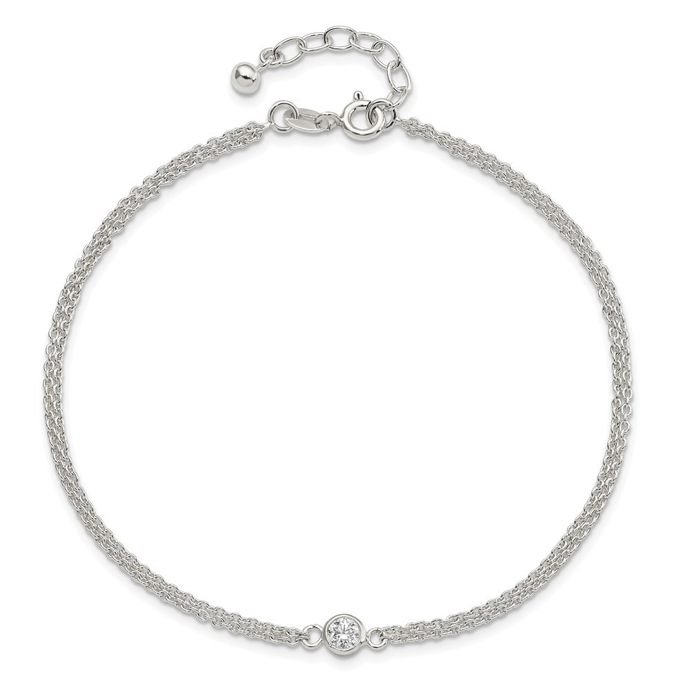 925 Silver Rhodium-Plated CZ Anklet 9in w/1in Extender