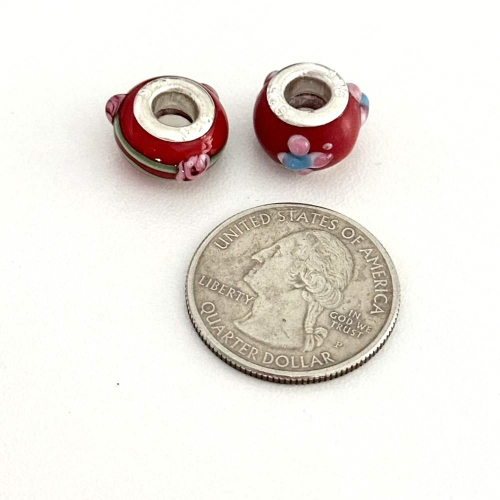 925 Sterling Silver Cherry Red Murano Glass Floral European Charm Set Lot Of 2 Signed: 925 Very good condition. Compatible with Pandora bracelets, Chamila, Trollbeads, etc. - Fast shipping, I ship the same or next business day! I also combine shipping. - Thank you so much for shopping with me and please check out my other jewelry listings, I post new pieces daily!