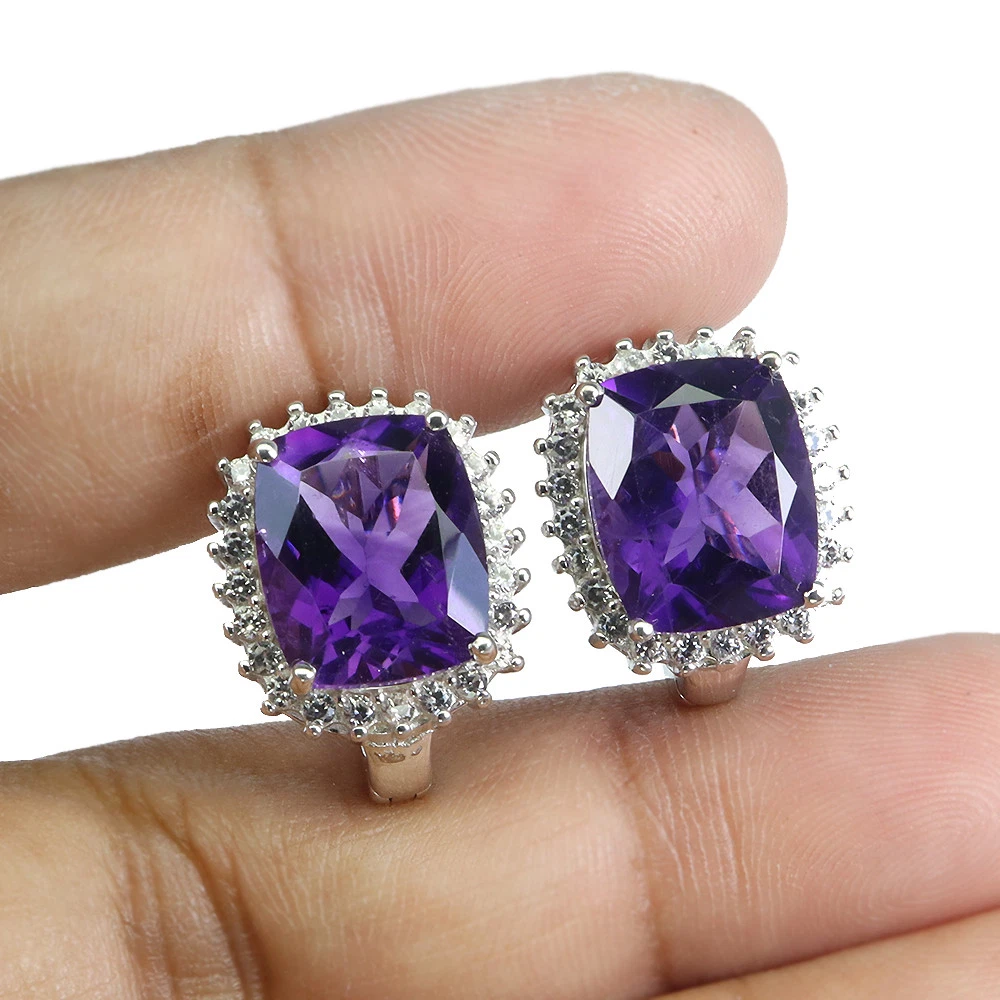 925 Sterling Silver Earrings Antique Amethyst 12x10mm White Zircon Gemstone PRODUCT ID EE2404100158 PRODUCT TYPE Earrings TYPE OF METAL 925 Sterling Silver PLATE 14k White Gold Ring size/Length (inches) MAIN STONE Amethyst OTHER GEMS Zircon TOTAL weight 7.63 gram (total weight of silver + stone) DIMENSION * STONE 1.5 X 12.0 X 10.0 MM. * FACE EARRINGS 16.0 X 14.0 MM. MAIN STONE SHAPE Antique Cut MAIN STONE COLOR Top Rich Purple CLARITY/GRADE If To Vvs LUSTER Precious TREATMENT Unheated ORIGIN Uruguay HARDNESS 7 IF very high quality & Free from inclushions. VVS high quality with very slight inclushions. SI1 Good Quality with slight inclusions visible to the naked eye. SI2 include becoming prominent to the eye. I included. "Delivering excellent with eBay" we accept: PayPal payment which we prefer. FOR US BUYER >>>> PLEASE READ We are genuine seller from THAILAND. All products are originally 100% manufactured in THAILAND. Every items are 100% exported directly from THAILAND. However, we use shipping provider 'Webgistix' who is a US distributor. The items will be allocated from Webgistix's distribution office in Las Vegas, NV by USPS. Please understand that the tracking status will show starting from Las Vegas when you track the items. Feel free to ask for more details. We ship item(s) from Thailand to Worldwide in 24 hr. ( in working day ) after the payment was cleared. $10 - flat rate for a registered airmail, takes 20 - 40 days delivery. Thailand Post stops the service to Latvia, Lithuania, Malta, Moldova, Estonia, Georgia and Israel. Fedex cost up on destination with insure and online tracking. Destinations Asia NORTH AMERICA, CANADA EUROPE (WEST) EUROPE (EAST), SCANDINAVIA, MIDDLE EAST SOUTH AMERICA, AFRICA FEDEX EXPRESS (minimum) $70 $70 $70 $80 $80 Fedex rate will be charged by weight and destination area. A combine package is limited at 10 items within 10 days. Do not send your payment directly, just contact us to request total when you finish bidding (ebay cannot automatic combine items). Any single item weigh over 300ct is not eligible to combine. Buy over US $999 in one payment (10 items within 10days), Get Free FedEx shipment. TAX/CUSTOM: Custom fee is out of seller control. Buyer is responsible for the cost at arrived. Please give us an opportunity when you have questions with item received. Buyer can make agreement on discount or return the shipping in case of damage item. Seller is located in Thailand. So please contact seller for the instruction before return any item. Your communication is most important to solve the problem. International buyers note: Import duties, taxes, and charges are not included in the item price. These charges are the buyer's responsibility. Please check with your country's customs office to determine what these additional costs will be prior to bidding/buying.