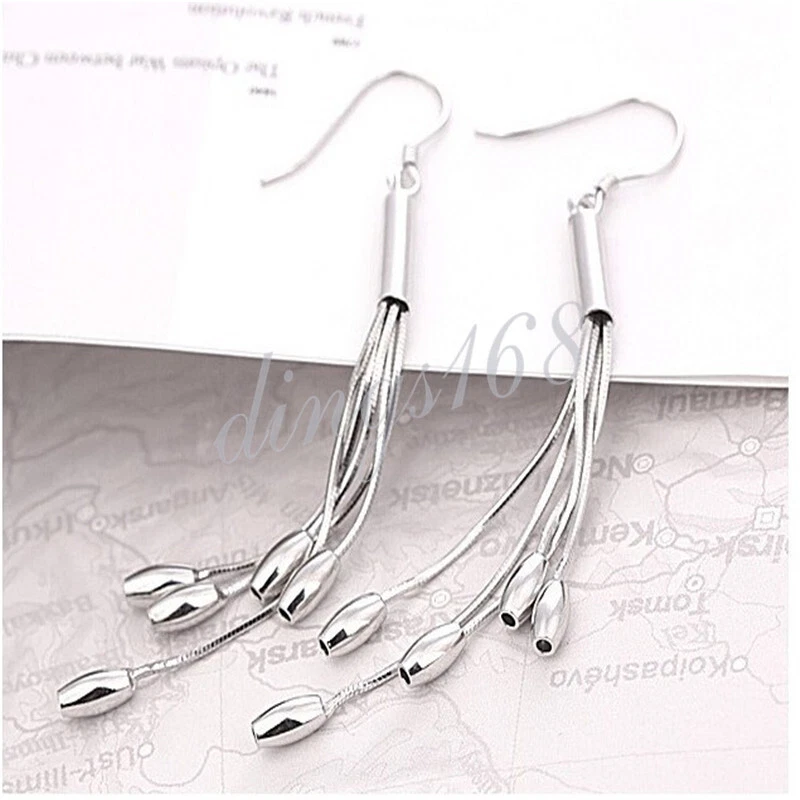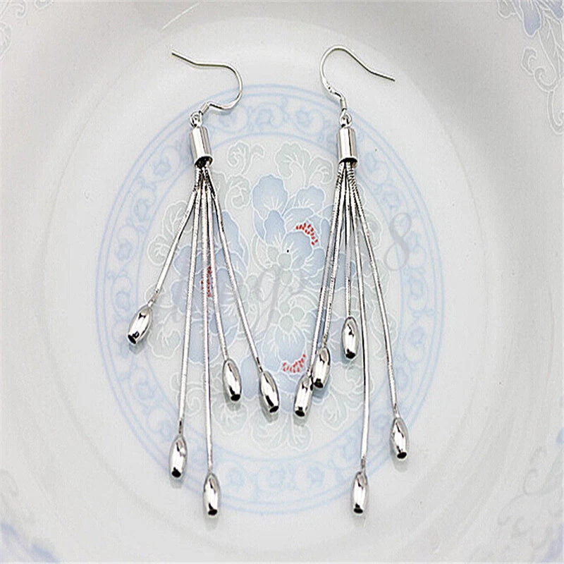925 Sterling Silver HypoAllergenic 89mm 5-Thread Bead Tassels Hook Earrings T754