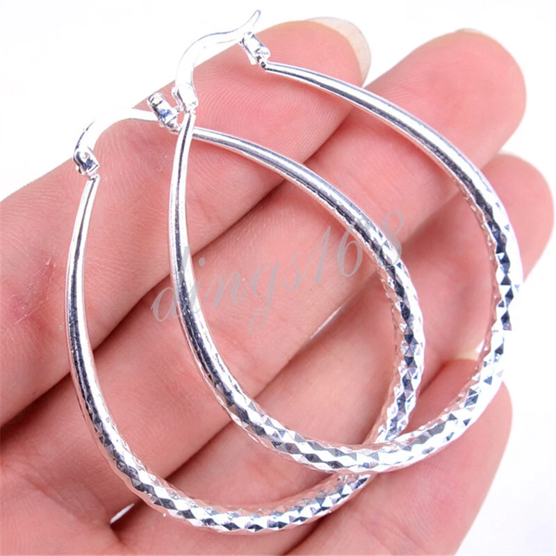 This listing is for a pair of 56 mm * 41 mm (2.18*1.62 inch) wide essential 925 Sterling Silver U-Shape Hoop (Tube) Hoop earrings. It is hypoallergenic and waterproof, so you can do your daily routine without having to take it off. This timeless essential is the perfect gift idea for anyone - your significant other, family, friends, or for yourself. Give someone special luxurious fine jewelry to rock from day to night with style. It is covered under our 60-day 100% money-back guarantee. *** Free gift box included. Product ID: A612 Metal: 925 Sterling Silver Color: Silver Product Dimension: 56 mm * 41 mm (2.18*1.62 inch) 1.4mm thick on top; 5mm thick on bottom Weight: 7.1 gram Quantity: One Pair of Earrings Note: *** Please always refer to the description for the measurement of the product. Please do not judge the size based on the picture on your screen. The product may look larger or smaller based on your screen size. 100% Satisfaction Guarantee We offer 100% satisfaction guarantee for all products we sell. If you are not 100% satisfied, you may always return the product for full refund or exchange within 60 days of purchase. Shipping & Payment All orders are shipped through USPS(Postal Office) from our warehouse in California, USA within 24 hours after your payment reaches us. For International buyers: We ship to all countries. We pay all shipping charge in full before your package is shipped. For international buyers, you may be collected an fee when the package is delivered. It's an importing tax that your government charges to protect your domestic business and job opportunities. It's the buyer's responsibility to pay the tax. Contact us The best way to contact us is through eBay message by using eBay's "ask a question" link.