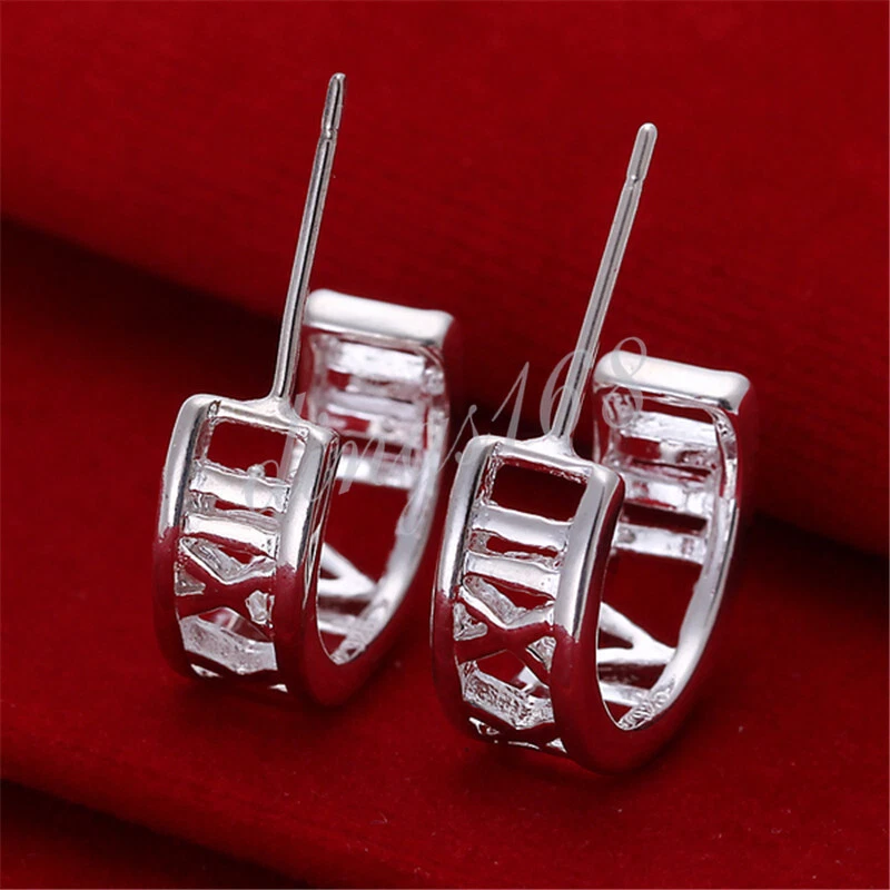 Product Description: This listing is for a pair of 14mm/0.55 inch stylish 925 Sterling Silver Roman Numeral open hoop earrings. It is nickel-free, lead-free and waterproof. So you can do your daily routine without having to take it off. It's a perfect piece for every situation, every day of the week. It is covered under our 60-day 100% money-back guarantee. *** Free gift box included. Metal 925 Sterling Silver Product Dimension Diameter: 14 mm (0.55 inch); Hoop width: 5.5mm *** Please always refer to the description for the measurement of the product. Please do not judge the size based on the picture on your screen. The product may look larger or smaller based on your screen size. Weight 4.0 gram Main Color White Note Product SKU: B223 Shipping Policy (U.S, APO, FPO, Puerto Rico, Virgin Islands) All products will be shipped from our warehouse in Morgan Hill, California, USA For USA buyers, we will ship your order by USPS (Postal Office) First Class Mail or Priority Mail (Please make your choice when you make payment). We ship within one working day once payment received. Payments received before 1:00PM will be shipped on the same day. We ship to all address, including physical address, P.O. Box address, Puerto Rico, Virgin Islands, Guam, APO, FPO etc. International Buyers We ship worldwide. Flat Rate shipping to all countries regardless of quantity. For packages of such small size, most countries usually do not charge importing tax. However, in case there is any in importing tax, Please Note: Import duties, taxes, and charges are not included in the item price or shipping cost. These charges are the buyer's responsibility. Please check with your country's customs office to determine what these additional costs will be prior to bidding or buying. Customs fees are normally charged by the shipping company or collected when you pick the item up. These fees are not additional shipping charges. We can not guarantee the exact delivery date for international orders. Customer Service & Return Policy We care about our valued buyers, if you have any questions, our Customer Service staffs will be very glad to help you. We try our best to reply to your emails as soon as possible, however, due to high volume of daily incoming emails and time zone difference, we may not be able to reply your emails immediately. You satisfaction is always our No. 1 concern. Our success is 100% based on your satisfaction and continuous support. No matter for whatever reason, if you are not 100% satisfied, you may always return the product for refund or exchange. Please e-mail us with a brief reason before returning a package. Feedbacks Dear buyers, we appreciate your business, if you are satisfied with our product and service, please leave us a positive feedback. Your recognition will make us more confident to develop business and serve you better. Our goal is to make sure you are a happy buyer and pleasant shopping with us. Please email us before leaving any 1 or 2 ratings, negative feedback or open any dispute. We understand the concerns and frustrations you might have, and will do our endeavor to resolve the issues. Please give us the opportunity to resolve any problem. For international buyers, when you rate the shipping time part please take international transit into consideration.