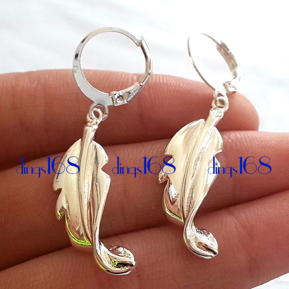 Product Description: This listing is for one pair of 925 sterling silver hypo-allergenic twisted-leaf small hoop dangle earrings. It is shiny, tarnish-free and hypoallergenic. It's a perfect piece for every situation, every day of the week. They are Hypoallergenic and tarnish-resistant. It does not flake off, lose luster or discolor. It is covered under our 60-day 100% money-back guarantee. *** Free gift box included. Metal 925 Sterling Silver Product Dimension Overall: 44mm x 14mm (1.73 inch*0.55 inch); Hoop: 12mm * 12mm (0.47 * 0.47 inch); Leaf: 30mm *10mm (1.18 inch * 0.39 inch) *** Please always refer to the description for the measurement of the product. Please do not judge the size based on the picture on your screen. The product may look larger or smaller based on your screen size. Weight 3.6 gram in total (1.8 gram each) Main Color White Product SKU A1R Shipping Policy (U.S, APO, FPO, Puerto Rico, Virgin Islands) All products will be shipped from our warehouse in Morgan Hill, California, USA For USA buyers, we will ship your order by USPS (Postal Office) First Class Mail or Priority Mail (Please make your choice when you make payment). We ship within one working day once payment received. Payments received before 1:00PM will be shipped on the same day. We ship to all address, including physical address, P.O. Box address, Puerto Rico, Virgin Islands, Guam, APO, FPO etc. International Buyers We ship worldwide. Flat Rate shipping to all countries regardless of quantity. For packages of such small size, most countries usually do not charge importing tax. However, in case there is any in importing tax, Please Note: Import duties, taxes, and charges are not included in the item price or shipping cost. These charges are the buyer's responsibility. Please check with your country's customs office to determine what these additional costs will be prior to bidding or buying. Customs fees are normally charged by the shipping company or collected when you pick the item up. These fees are not additional shipping charges. We can not guarantee the exact delivery date for international orders. Customer Service & Return Policy We care about our valued buyers, if you have any questions, our Customer Service staffs will be very glad to help you. We try our best to reply to your emails as soon as possible, however, due to high volume of daily incoming emails and time zone difference, we may not be able to reply your emails immediately. You satisfaction is always our No. 1 concern. Our success is 100% based on your satisfaction and continuous support. No matter for whatever reason, if you are not 100% satisfied, you may always return the product for refund or exchange. Please e-mail us with a brief reason before returning a package. Feedback and Detailed Seller Ratings Dear buyers, we appreciate your business, if you are satisfied with our product and service, please leave us a positive feedback. Your recognition will make us more confident to develop business and serve you better. Our goal is to make sure you are a happy buyer and pleasant shopping with us. Please email us before leaving any 1 or 2 ratings, negative feedback or open any dispute. We understand the concerns and frustrations you might have, and will do our endeavor to resolve the issues. Please give us the opportunity to resolve any problem. For international buyers, when you rate the shipping time part please take international transit into consideration. Click Here for this week's Special Offers!