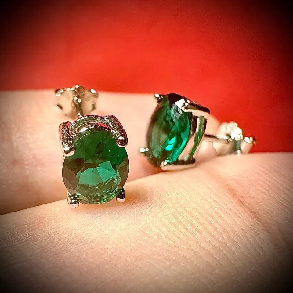 925 Sterling Silver Lab-Created Green Emerald Stud Earrings for Women with Free Shipping