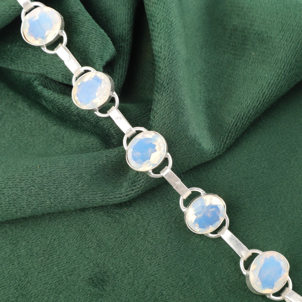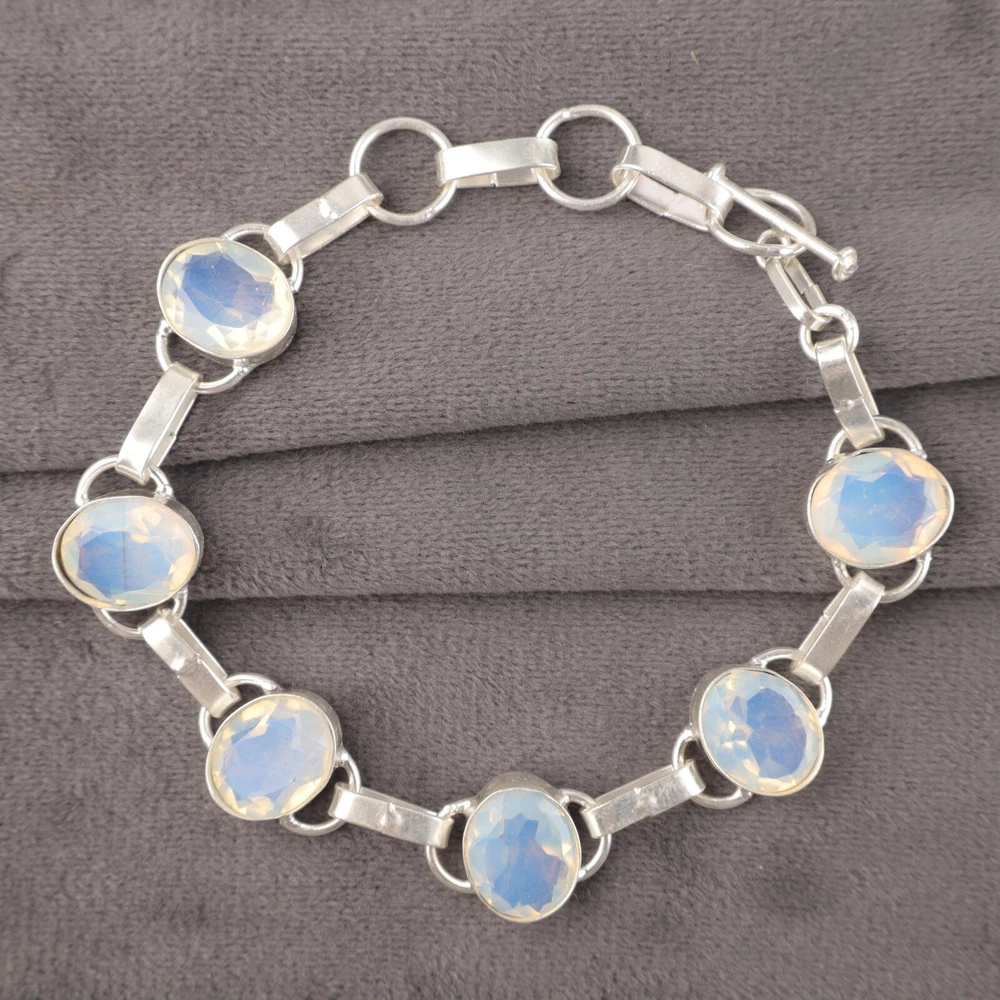 Welcome To Our Shop Gempires ------------------------------------------- Make yourself trendy and stylish with this 925 Sterling Silver Bracelet glittering with Milky Opal that will add majestic charm and elegance to your look. Exquisitely designed, this Bracelet will provide you a classy look. 925 Sterling Silver Milky Opal Gemstone Ethnic Chain Bezel Valentines Bracelet Check My Other Bracelet Listings : Click Here SKU:- RB-6-10 Metal:- Sterling Silver Metal Purity:- 925 Gemstone:- Milky Opal Gemstone Color:- White Gemstone Shape :- Oval Gemstone Creation :- Natural Stone Setting :- Bezel Bracelet Length:- 9 Inches Bracelet Width:- Inches ___________________________________________________________________ Shipping Handling - Free Standard Shipping all over the world Handling Time - 2 to 5 BUSINESS Days Delivery Time - 7 to 20 Days ( Various on destination ) _________________________________________________________________ Returns - 1.We provide a 100% Money Back Guarantee, excluding shipping costs, within 30 days from the date of item receipt. 2.The item must not be altered or damaged in any way shape or form. 3.Upon receipt of the aforementioned items, your payment will be promptly refunded. 4.Please be so kind as to contact us via email in order to acquire comprehensive return instructions before proceeding with the return of the merchandise. 5.Kindly be advised to allocate a maximum period of 1 business day for the processing of all returns, in order for the appropriate credit to be applied. 6.Sizing does not affect the return policy. _________________________________________________________________ FAQ's - Q.1 ARE THE ITEMS YOU ARE SELLING BRAND NEW? We exclusively offer brand-new products, refraining from the sale of pre-owned jewelry. Our entire jewelry collection is composed of 100% natural, conflict-free pieces. We do not engage in the trade of imitation or lab-grown gemstones and diamonds. Q.2 WHAT ARE YOUR BUSINESS HOURS? we operate 24x7 as we have a dedicated team who works in different shifts to deliver the services to our valuable customers. ________________________________________________________________ Gempires is committed to delivering customers an unparalleled experience through the provision of exquisite handmade jewelry, meticulously crafted to uphold the most exacting standards of quality. Our operations encompass dual roles as both discerning connoisseurs and skilled artisans within the realm of jewelry making. We proudly hold an extensive proficiency in the fine art of enhancing gemstones, allowing us to harmonize them seamlessly with diverse aesthetic inclinations. We are delighted to extend to you the privilege of curating your very own jewelry collection. This collection will be graced by the presence of genuine and splendid natural gemstones, each possessing an innate authenticity and beauty that is truly unparalleled. **** STAY BLESSED ALWAYS*****
