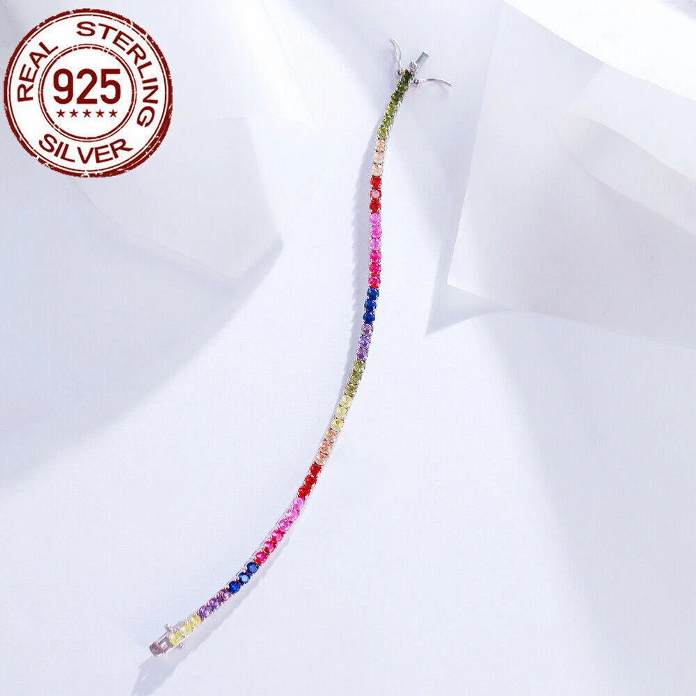 925 Sterling Silver Bracelet Multicolored Round Tennis CZ Cubic Zirconia Jewelry Specifications: Condition: New Size: 7 inch (17.8 cm) Stone Size: 3 mm Features: 1. Material - Top Level 925 Sterling Silver. Excellent Cut Simulated Diamond. Enjoy the dazzling sparkle from 925 Sterling Silver. 2. These Fashion Stud Earrings are Suitable for Daily Wear. 3. Perfect for Various Occasions: Ideal for Wedding, Prom, Pageant, Parties, Proms, Homecoming, Black Tie Formal Affairs, Holidays and Special Occasions. 4. A Perfect Jewelry Gift for Women , Girls , Mother , Wife , Lover , Fiancee , Friends . Package Includes: 1pc Bracelet Payment Delivery details Terms of sales & Feedbacks About us & Contact us Our commitment Payment 1. We only ship item to your Ebay verified address . Please Make sure all address are the same 2.Please leave note in ebay when making the payment if you have any special request (colors/size). Delivery details We only send items to the registered eBay address.Items will be shipped within 2 business days from the date payment is received (not include public holiday and weekend) . As per eBay regulations, import duties, taxes, and customs charges are the buyer's responsibility. Please check with your country's customs office to determine what these additional costs may be prior to bidding or buying. Terms of sales & Feedbacks After-Sale Please contact us to request a return/replace/refund authorization .It will be best if you use ebay message to contact me. 1, Return and replacement request is available only the requests within 30 days after parcel received. 2, Returning the item as the same condition as received. Situation and solution Defectives ---Please contact us and provide a photo of the defective part. After situation confirmed,we will offer you refund/return/replacement according to the situation Not as Described ---Please contact us and provide a photo of the wrong part. After situation confirmed,we will offer you refund/return/replacement according to the situation Not Received ---Please undersatnding shipping on the way was out of our control ,because of the busy shipping season,holidays,bad weather or force majeure etc. It may be delay for days. But if it took too much time and not deliveried, Please message me, I will offer you solution for it. Feedbacks 1. If you are satisfied with our service, please leave us a + Good feedback and rate the details of the transaction (DSR) with a. . When you rate the shipping time part please take international transit into consideration.] Your recognition will make us more confident to develop business and serve you better. 2. Please contact us first if you have any problem with the items,we will solve it in time ! 3. Please do not leave Neutral or Negative Feedback before you contact us, Thanks For Your Business ! About us & Contact us Working time: Chinese time(Eastern eight zones):Monday to Friday ,9:00 am to 6:00 pm. We do not work on chinese legal holiday. Message reply: We will reply all messages within 24 hours of business time. Please contact us via ebay message, it was the best way for both you and us to solve problems. Any questions or anything you need, please feel free to contact us. Our commitment 1.Wholesale price will be offered to you if you need in bulk ! 2.About Size
