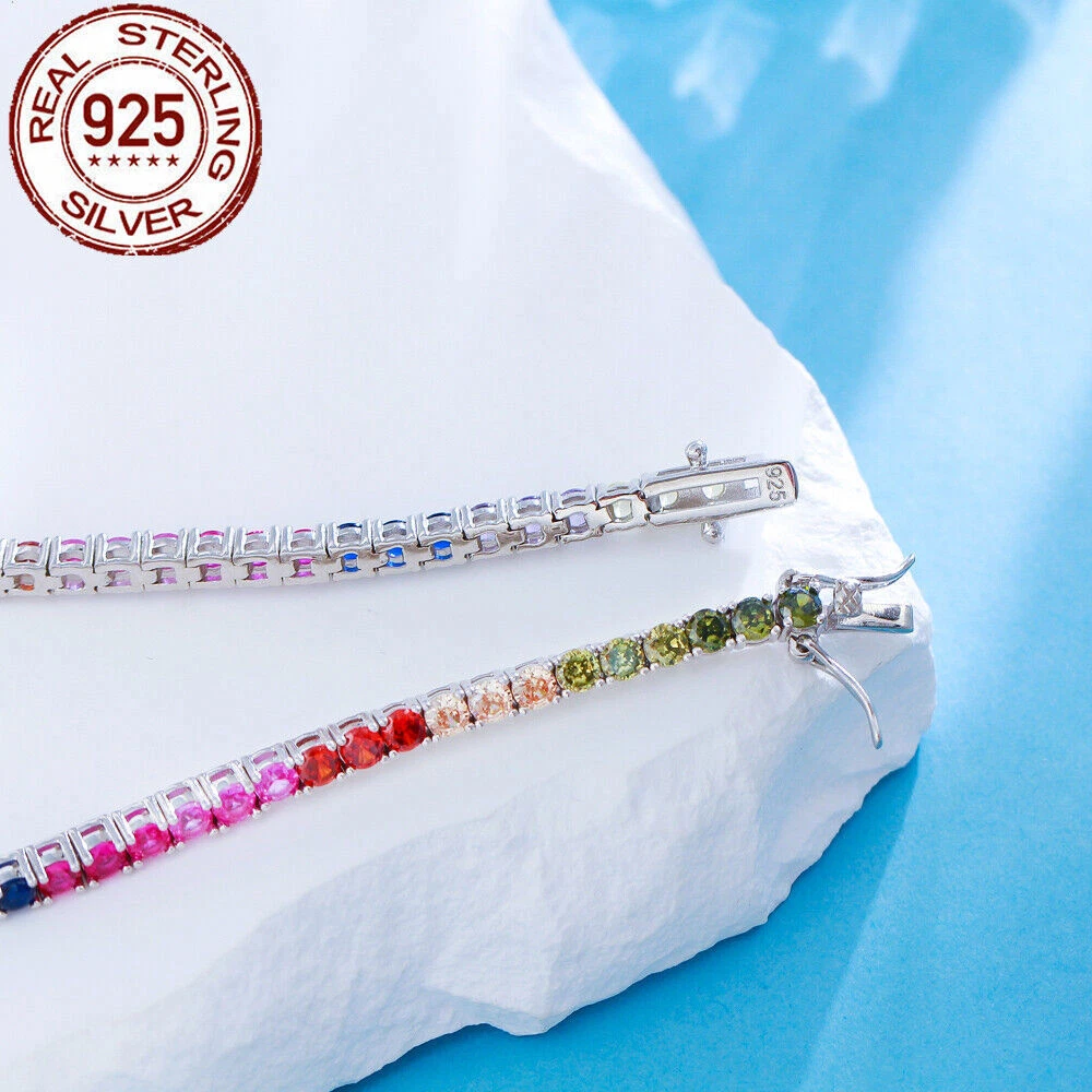 Occasion: Daily, Dancing Party , Banquet Dinner Shape: Round Type: Bracelet Metal: 925 Sterling Silver Size: 7 inch (17.8 cm) Style: Tennis Stone Size: 3 mm Color: Multicolor gtin13: Does not apply Item Type: Round Rainbow Tennis Bracelet Secondary Stone: Cubic Zirconia Main Stone Color: Multicolor Main Stone: CZ Stone/ Crystal Brand: CWWZircons Closure: Safety Clasp Features: Luxury, Elegant Gift For: Girls , Women , Wife , Best Friends UPC: Does not apply Metal Material: Genuine 100% 925 Sterling Silver Material: 925 Sterling Silver