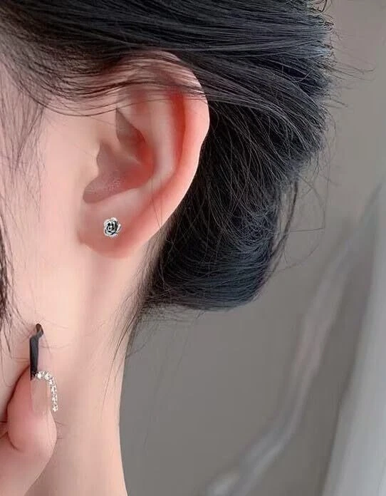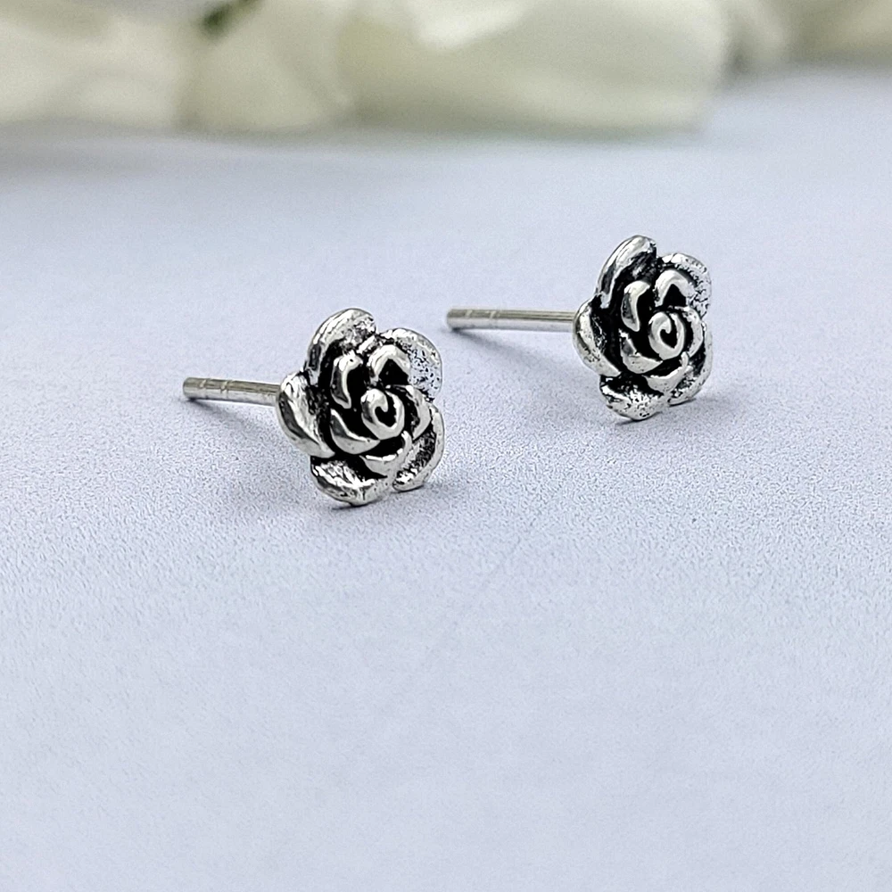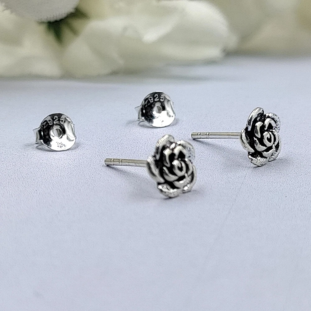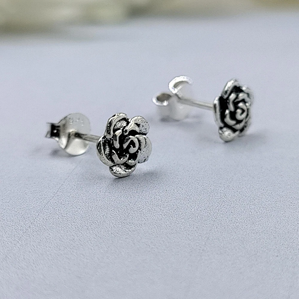 925 Sterling Silver Oxidised Rose Studs Oxidized Flower Earring Floral Jewelry