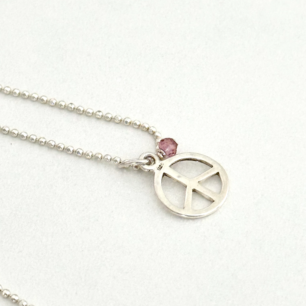 925 Sterling Silver Peace Sign Pink Crystal Pendant Bead Ball Chain Necklace Chain length: 16" Weight: 2.4 grams Signed: 925 Very good condition. - Fast shipping, I ship the same or next business day! I also combine shipping. - Thank you so much for shopping with me and please check out my other jewelry listings, I post new pieces daily!