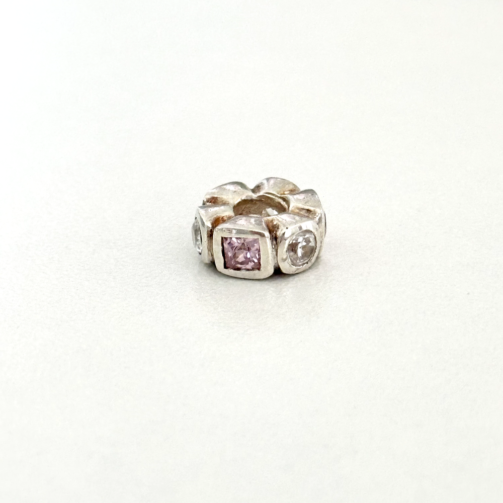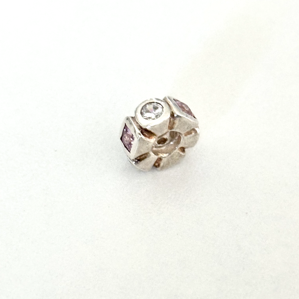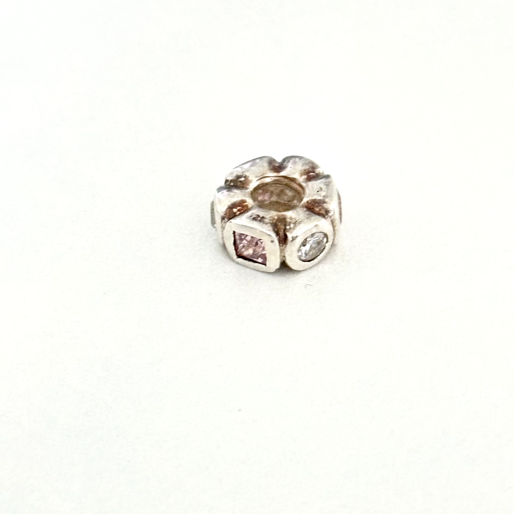 925 Sterling Silver Pink & Clear CZ Spacer Bead Charm