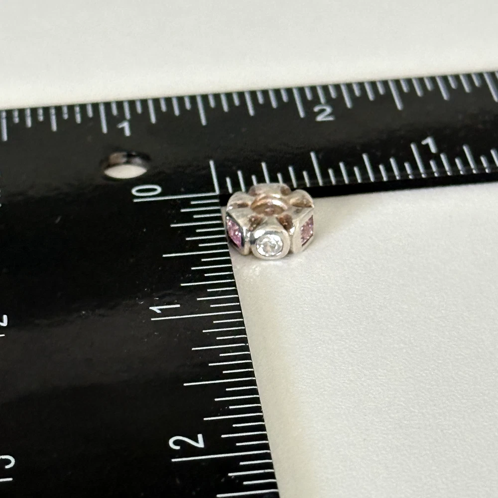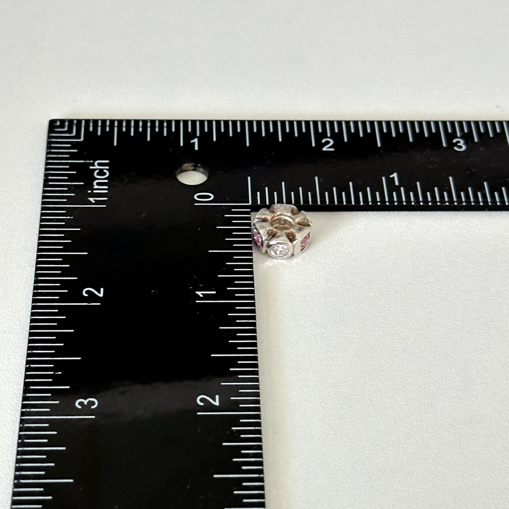 925 Sterling Silver Pink & Clear CZ Spacer Bead Charm Length: 11mm Weight: 2.6 grams Signed: 925 Good condition. - Fast shipping, I ship the same or next business day! I also combine shipping. - Thank you so much for shopping with me and please check out my other jewelry listings, I post new pieces daily!