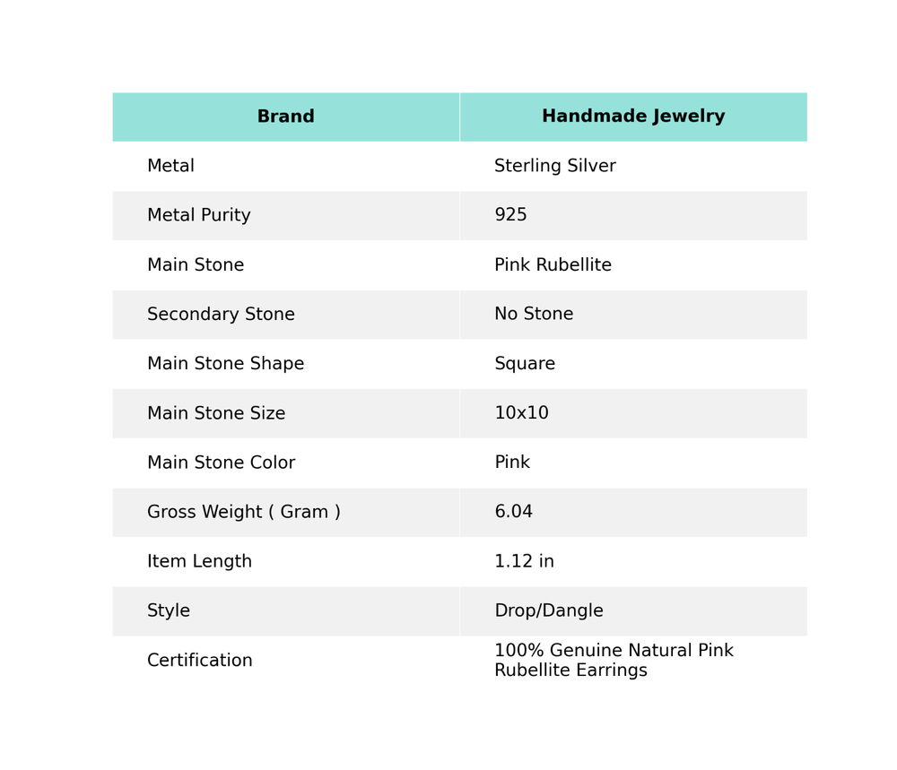 handmade_jewelry1 925 Sterling Silver Pink Rubellite Gemstone Bezel Drop Birthday Earrings Jewelry Base Metal : Sterling Silver Metal : Sterling Silver Metal Purity : 925 Main Stone : Pink Rubellite Secondary Stone : No Stone Main Stone Creation : Main Stone Treatment : Not Enhanced Certification : I guranteed authenticity of Earrings. Features and further details We Are Selling Fashion Jewelry Since 1973 Additional Features: First See All Details items Specified Also Buy Items Details: 925 Sterling handmade_jewelry1 Package Includes: Poly Wrap Packing Contact us Payment eBay Payment Accept Return 30 Days Free Return Accept Shipping 14-30 Days India Post International Feedback I Hope I received 5-Star rating If your Any Question Also Please Contact me Than Any Negative Comment option Select Disclaimer Every Piece of Jewelry Tells a Story