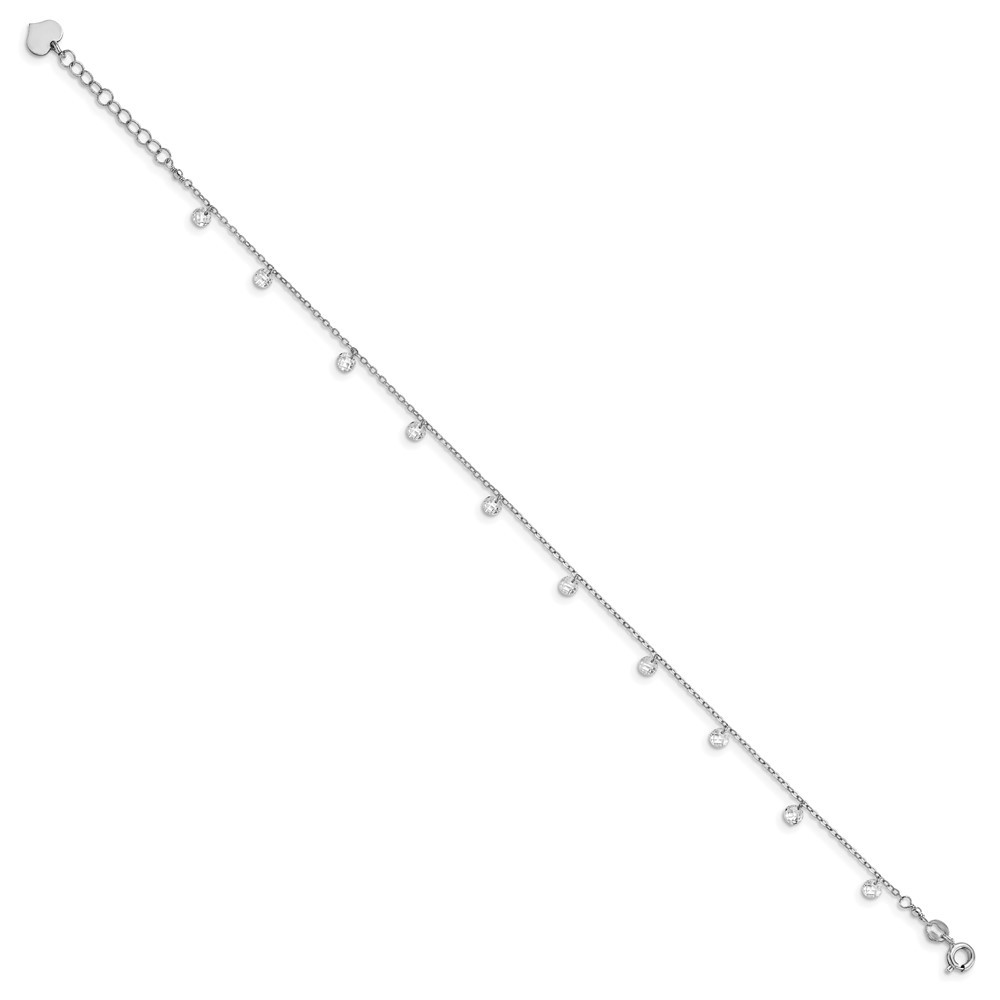 Sterling Silver Rhodium Plated Circle Anklet 9.5 Inch with 1 Inch Extension 1.5 Grams