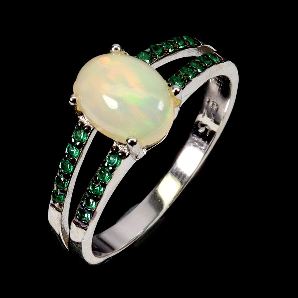 Australian Opal Inlay & Topaz 925 Solid Sterling Silver Ring Jewelry Sz 8 DT2