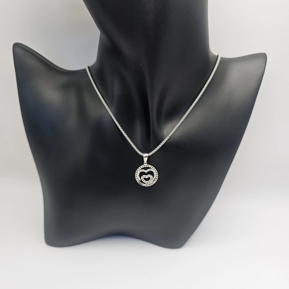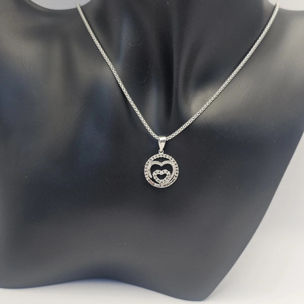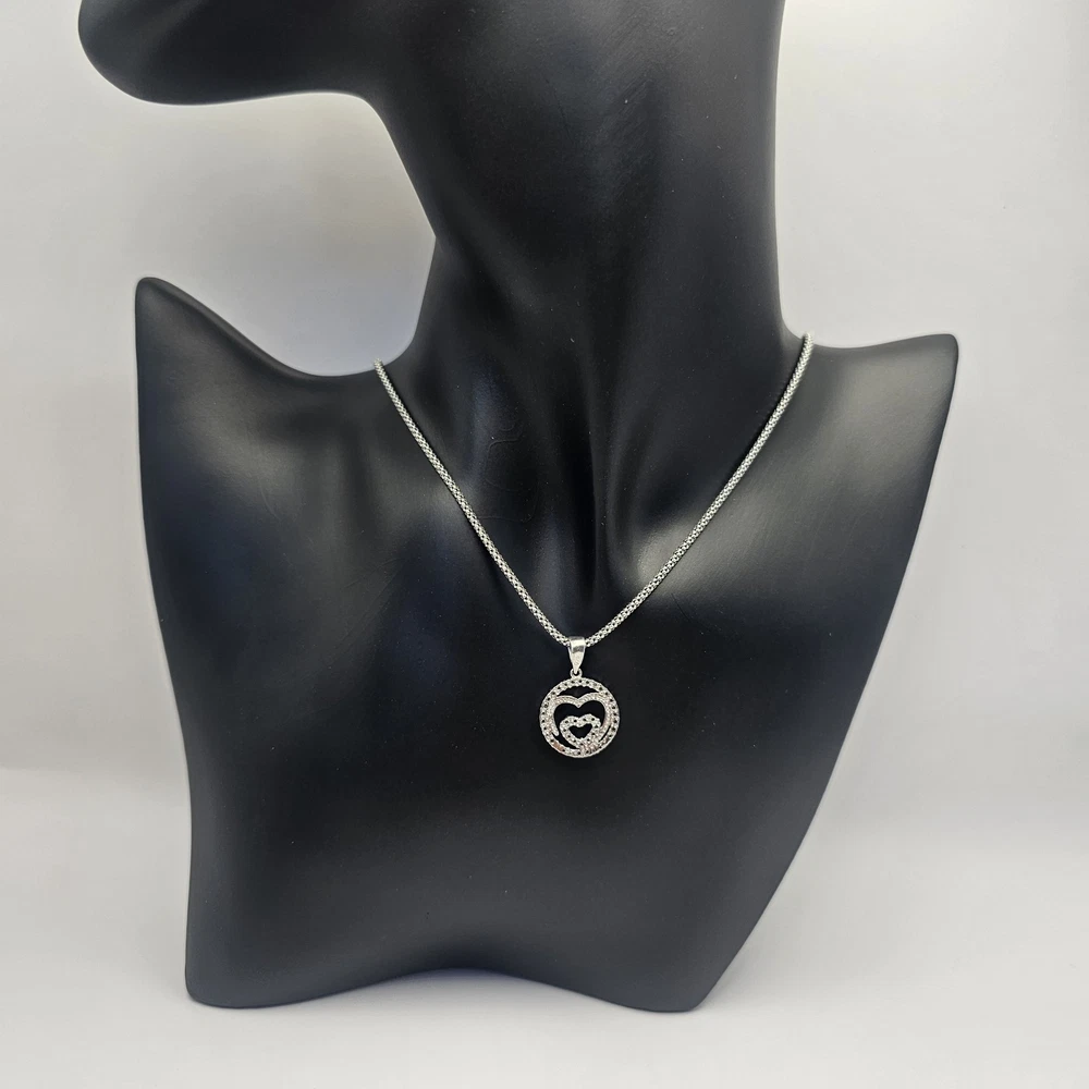 925 Sterling Silver Round Double Heart Pendant Valentine's Necklace