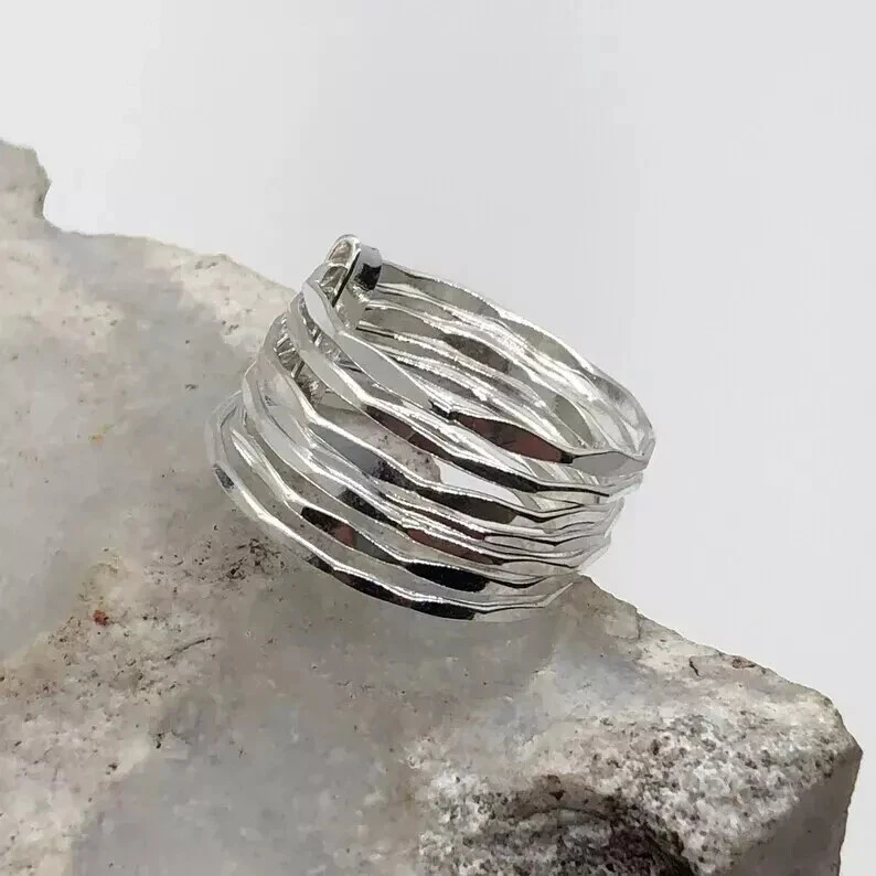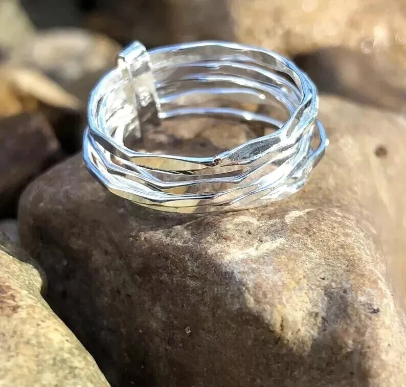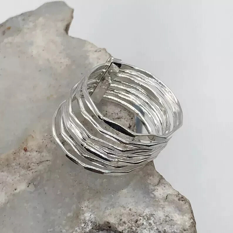 925 Sterling Silver Seven Band Statement Ring - Handmade Adjustable Size