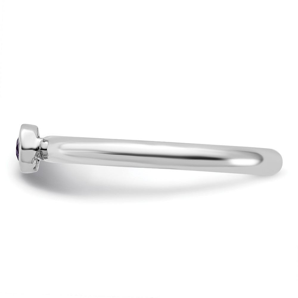 Material: Primary - Purity:925|Finish:Polished|Stone Type_1:Amethyst|Stone Color_1:Purple|Stone Quantity_1:1|Plating:Rhodium|Band Width:2.3 mm|Stone Setting_1:Bezel Set|Stone Weight_1:0.14 ctw (total weight)|Feature:Solid|Manufacturing Process:Casted|Material: Primary:Sterling Silver|Completeness:Complete (all stones included)|Sizeable:No|Stone Shape_1:Round|Stone Size_1:2.5 mm|Stone Treatment_1:Heating|Item Weight U/M:gm|Width of Item:2.3 mm|Product Type:Jewelry|Jewelry Type:Rings|Sold By Unit:Each|Gender:Women's|Material: Primary - Color:White|Ring Type:Stackable|Ring Top Length:4.5 mm|Ring Top Width:4.5 mm|Plating Color:Silver Tone|Stone Creation Method_1:Natural Welcome to diamond_6720 Payments We accept all Ebay approved payment. Please sent the payment to us within 8 days after the auction has ended, or you will have unpaid case auto open by eBay. Shipping Policy We will ship all items within 1 business days of purchase during the work week (M-F) excluding holidays. If you order on Friday, your order will be shipped the following business day. Tracking will be provided when it becomes available. We will only ship to a PayPal Verified Address. Please make sure your address is current and correct. If the information does not match, your order may be canceled. Buyers are responsible for all customs, duties and taxes for your respective countries. Delivery times for International Shipping will vary. California Buyers Pay 9.0% Tax on all orders. case auto open by eBay. Return Policy & Exchange Returns or Exchange are accepted. Buyer must contact us within 30 days after the item is received. Item must be returned in unworn and resalable condition. We will only issue a refund for the purchase price, excluding any shipping fees. If we are at fault, we will provide a full refund. Buyer is responsible for all return shipping costs. BUYERS FEEDBACK If you have any concerns regarding your purchase, please contact us via eBay Message, we assure you that a satisfactory resolution will be reached. Your feedback is very important to us Do remember to give us 5 star rating(*****) if you are satisfied with our product & service .