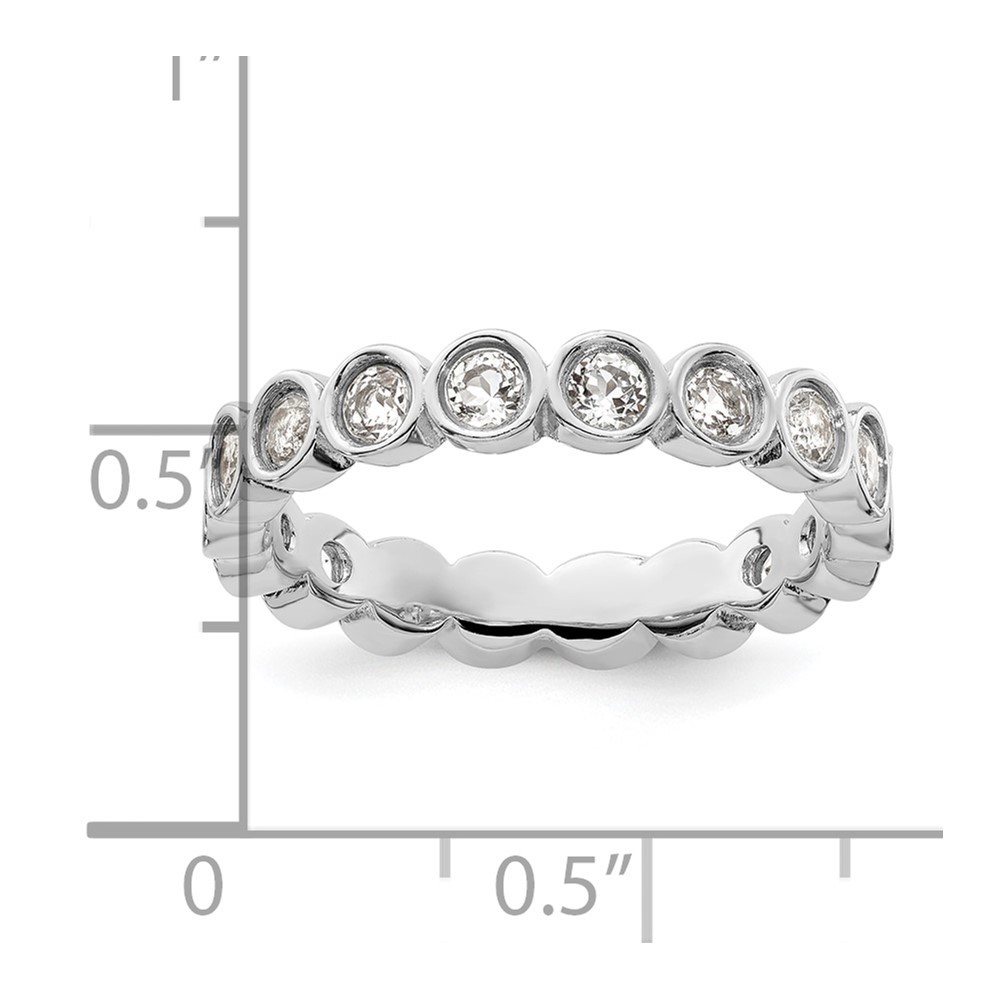 Material: Primary - Purity:925|Finish:Polished|Stone Type_1:White Topaz|Stone Color_1:White|Stone Quantity_1:20|Plating:Rhodium|Band Width:3.5 mm|Stone Setting_1:Bezel Set|Stone Weight_1:1.6 ctw (total weight)|Feature:Solid|Manufacturing Process:Casted|Material: Primary:Sterling Silver|Stone Shape_1:Round|Stone Size_1:2.5 mm|Stone Treatment_1:Not Enhanced|Item Weight U/M:gm|Product Type:Jewelry|Jewelry Type:Rings|Sold By Unit:Each|Material: Primary - Color:White|Ring Type:Eternity|Stone Creation Method_1:Natural Welcome to diamond_6720 Payments We accept all Ebay approved payment. Please sent the payment to us within 8 days after the auction has ended, or you will have unpaid case auto open by eBay. Shipping Policy We will ship all items within 1 business days of purchase during the work week (M-F) excluding holidays. If you order on Friday, your order will be shipped the following business day. Tracking will be provided when it becomes available. We will only ship to a PayPal Verified Address. Please make sure your address is current and correct. If the information does not match, your order may be canceled. Buyers are responsible for all customs, duties and taxes for your respective countries. Delivery times for International Shipping will vary. California Buyers Pay 9.0% Tax on all orders. case auto open by eBay. Return Policy & Exchange Returns or Exchange are accepted. Buyer must contact us within 30 days after the item is received. Item must be returned in unworn and resalable condition. We will only issue a refund for the purchase price, excluding any shipping fees. If we are at fault, we will provide a full refund. Buyer is responsible for all return shipping costs. BUYERS FEEDBACK If you have any concerns regarding your purchase, please contact us via eBay Message, we assure you that a satisfactory resolution will be reached. Your feedback is very important to us Do remember to give us 5 star rating(*****) if you are satisfied with our product & service .