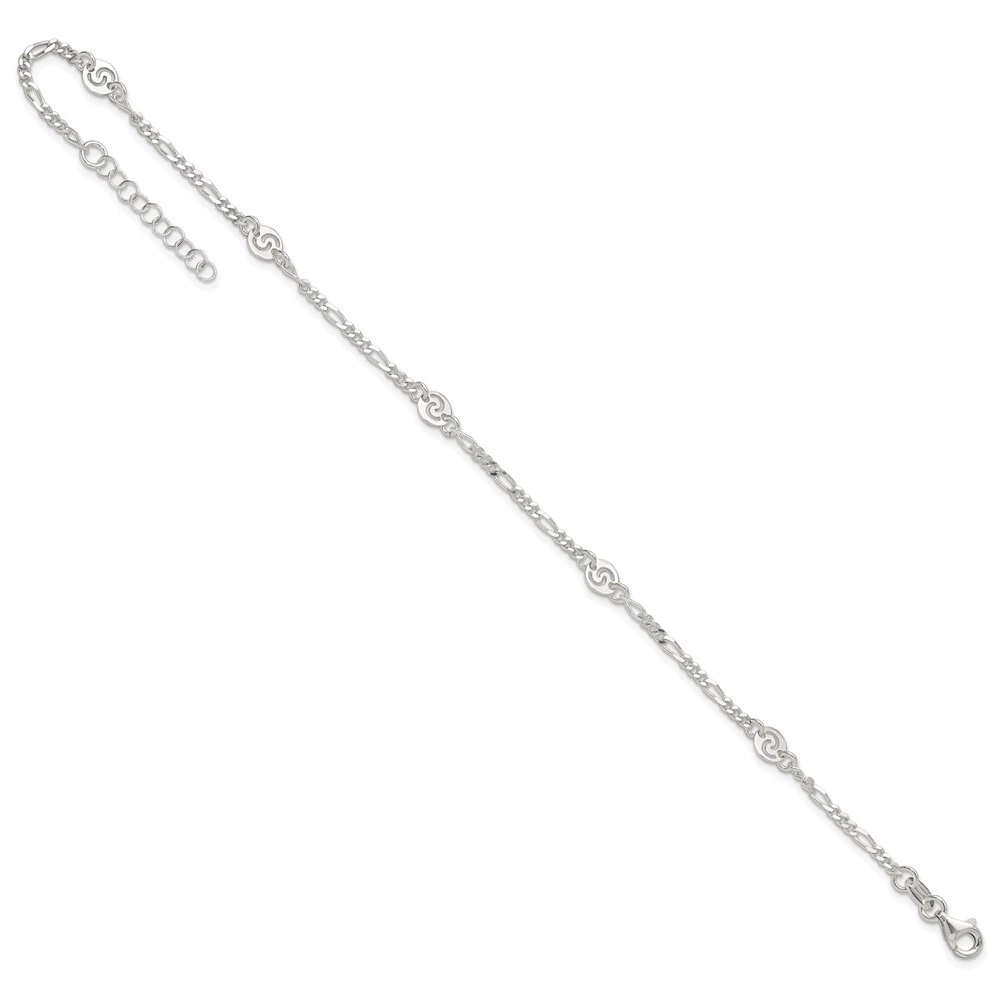 925 Sterling Silver 2.85mm Figaro Chain Anklet 10" 3.85gm