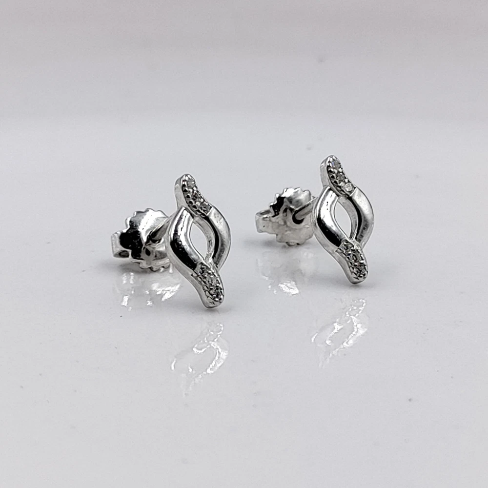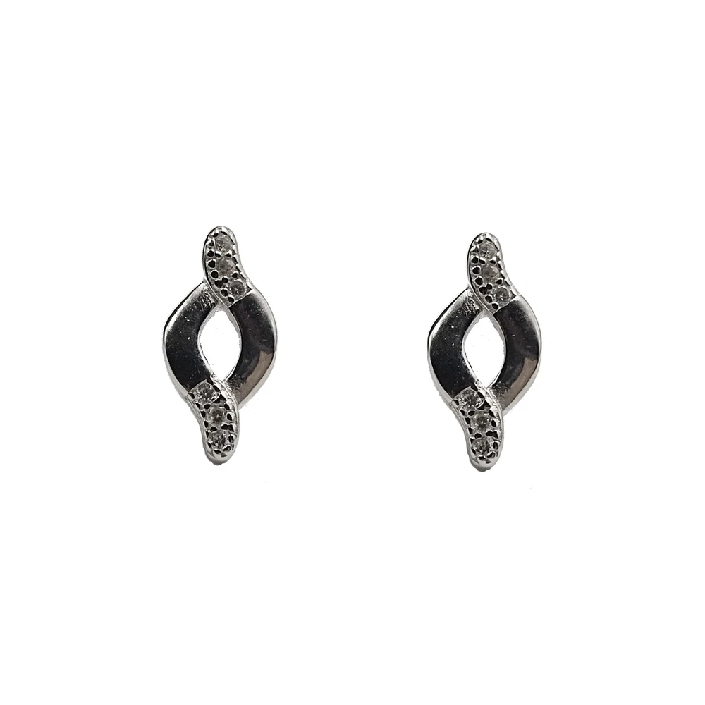 925 Sterling Silver Twisted Shape Studs Bridesmaid Studs CZ Gift Studs