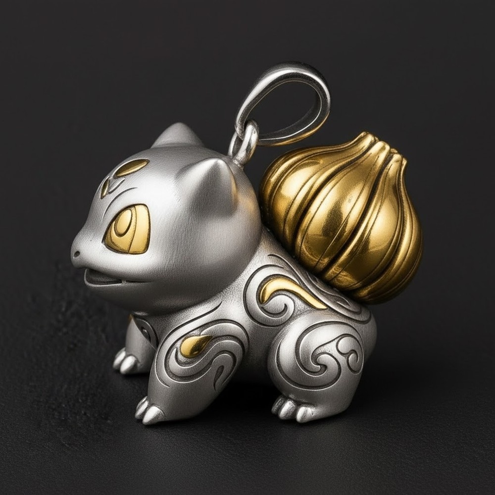 925 Sterling Silver Two Tone Plant Creature Animal Inspired Bulbasaur Pendant