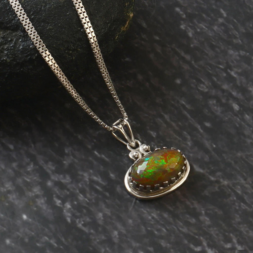 Country of Origin: India Country/Region of Manufacture: Ethiopia Pendant Shape: Oval Style: Pendant Main Stone: Opal Main Stone Color: Fire Necklace Length: 18 in Theme: Nature Wholesale: Yes Metal Purity: 925 weight: 38 cts Handmade: Yes Base Metal: Silver Size: 5-10 mm Main Stone Treatment: Not Enhanced Setting Style: Bezel Color: White Type: Necklace Main Stone Creation: Natural Features: Adjustable Closure: Lobster Vintage: Yes Material: Gemstone Chain Type: Ball/Bead Signed: Yes Pendant/Locket Type: Tassel Brand: Sterling Cut Grade: Excellent Occasion: Anniversary, Birthday, Christening, Christmas, Engagement Metal: Silver Main Stone Shape: Oval Secondary Stone: Opal Number of Gemstones: 1 Gemstone Clarity Grade: Heavily Included