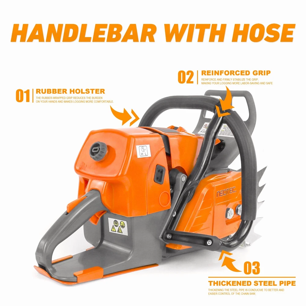 Neotec NS892V1 92cc Chainsaw with 36'' Guide Bar Chain.The Power head and Bar Combo are two separate parcels. PRO Commercial 92cc Gas Chain Saw NEO-TEC PRO Gas Chain Saw Power Head With Upgrade Handle Bar NS892V1 Fit For MS 660, All parts compatible with MS 660 066. 92 cc Working Power 5.2 kw 7 HP Ideal for Big Wood Cut with Plus Handle Bar NS892V1 Chain saw Fit For 25/28/36 Inch Guide Bar which cuts through the woods or falling tree quickly and easier. 1PC Chainsaw Power Head 92CC 1PC Guide Bar Cover/Gloves 1PC Handle Tank Guard Protection Plate 1PC Tool Kit/Fuel Oil Mixing Bottle 1PC Instruction Manual 1PC Glasses/Earmuff Choosing The Right Bar.
