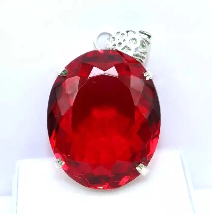 95 Ct Natural Red Topaz 925 Solid Sterling Silver Pendant A+ Gemstone + Gift