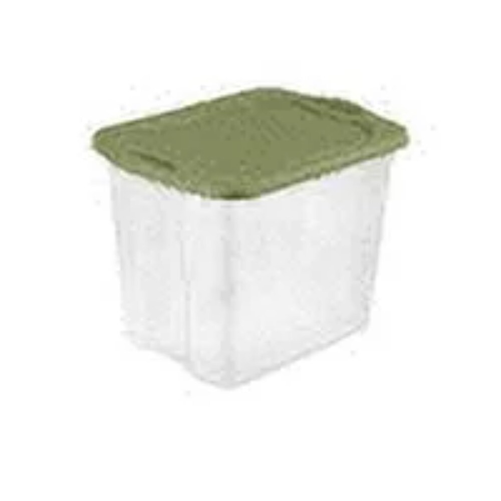 Make moving your storage easier, with innovative line of Storage Boxes and Totes! Unique through handles are designed to provide full grip access for comfortable lifting and carrying, as well as easier maneuvering through doorways, hallways, and up and down stairs. The 95 Quart size is ideal for bedding, seasonal clothing, camping and sporting gear, and other bigger, bulkier items around the home. The clear base allows for quick viewing of contents, and the recessed lids allow same size storage boxes to stack neatly on top of each other to use vertical storage space efficiently. The 95 Qt Clear Storage Box shares the same lid as the and 70 Qt size, allowing secure stacking of both the shallow and deep storage boxes in one footprint. The clear and opaque versions can be stacked interchangeably because of the common lid on the 17.5 and 23.8 Gallon Carry Totes. The overall assembled dimensions of this item are 24 5/8" L x 18 3/4" W x 19 1/8" H. Adult Plastic 95 Qt. Clear/Sage Legume: Outside Dimensions: 24 5/8" x 18 3/4" x 19 1/8" The 95 Quart size is ideal for bedding, seasonal clothing, camping and sporting gear, and other bigger, bulkier items around the home Single unit option Clear base allows for contents to be viewed at a glance and easy to find - Clear/Sage Legume Interior Dimensions at bottom: 17 3/4" x 14 1/2" x 18 1/4" Carry through handles allow for full grip access and easier portability Ideal for a variety of household storage needs, with a wide range of sizes The clear base allows for quick viewing of contents Deep recessed lid allows for secure stacking of multiple bases BPA-free and phthalate-free