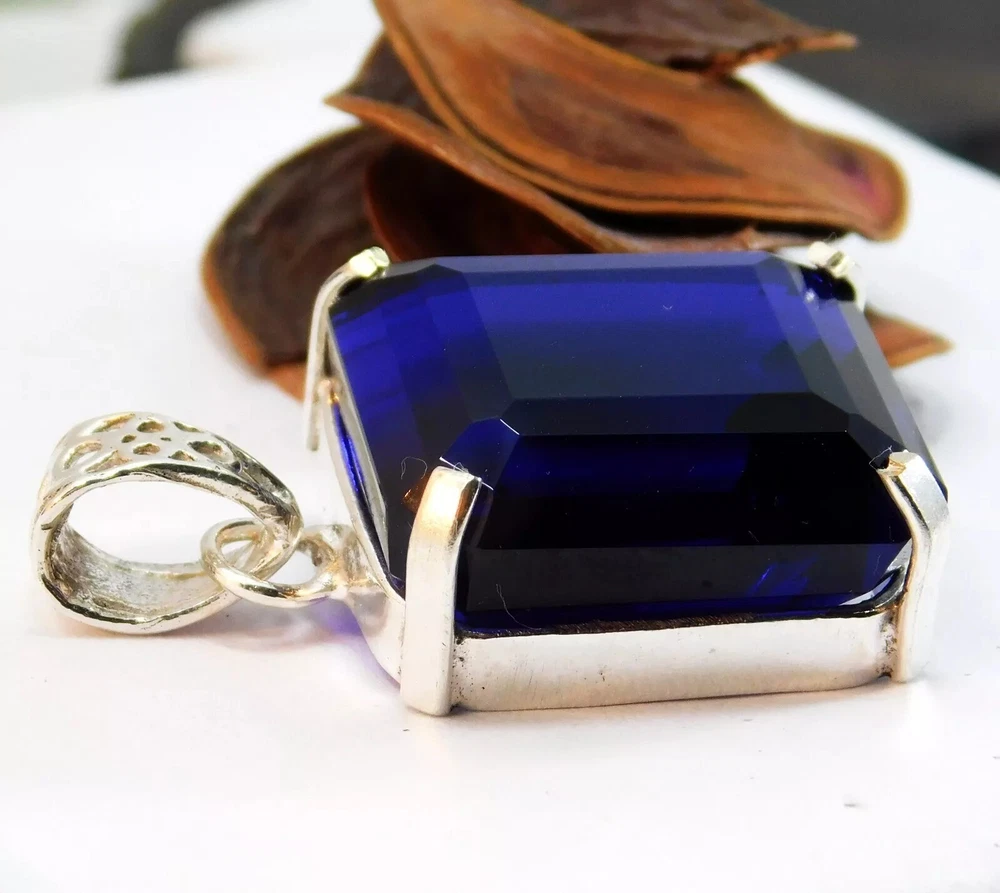 Looks as pictured. Gorgeous dark bluish- purple color. Shipping time not bad. Came, unexpectedly, with a free, smaller pendant. Recommend!