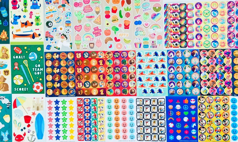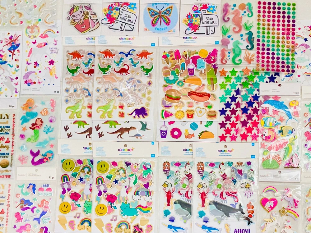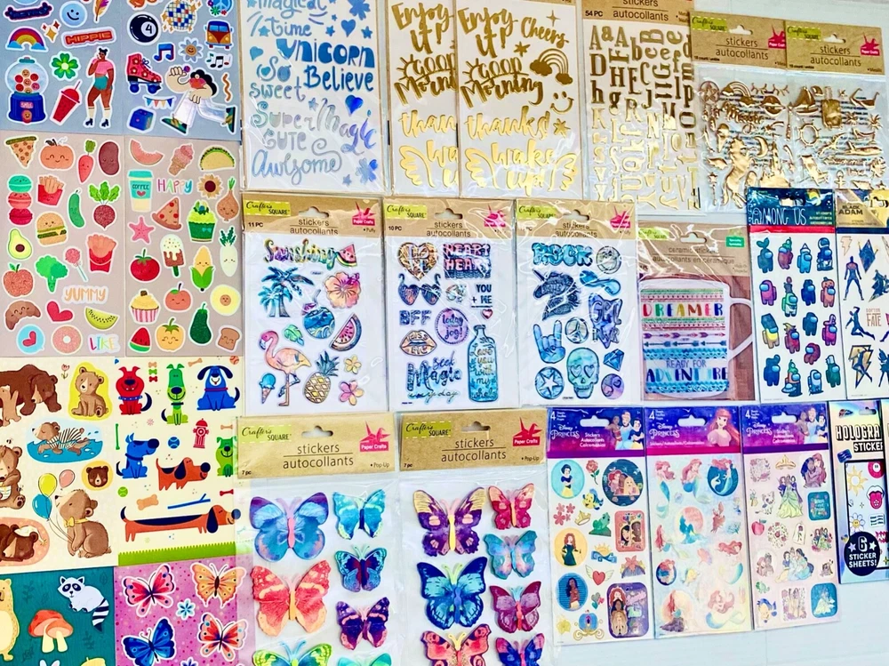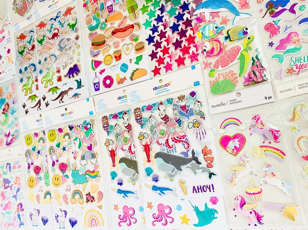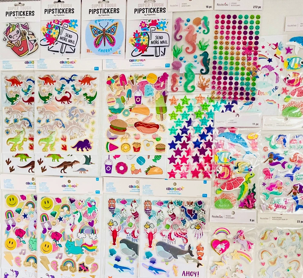 HUGE Mixed Sticker random Lot | The Ultimate Kit | Qty. 959+ Stickers | High Quality Only! Fun Assortment of Glitter, Metallic, Laser, Puffy, Scrapbook, Cartoons, Bubble, Pop Up Holographic Stickers For Everyone and every occasion! I have included a large variety of pictures of the assortment available. The pictures give you an idea of what you will be receiving. Please Note: You will not receive everything pictured. Please contact me with any special requests. T
