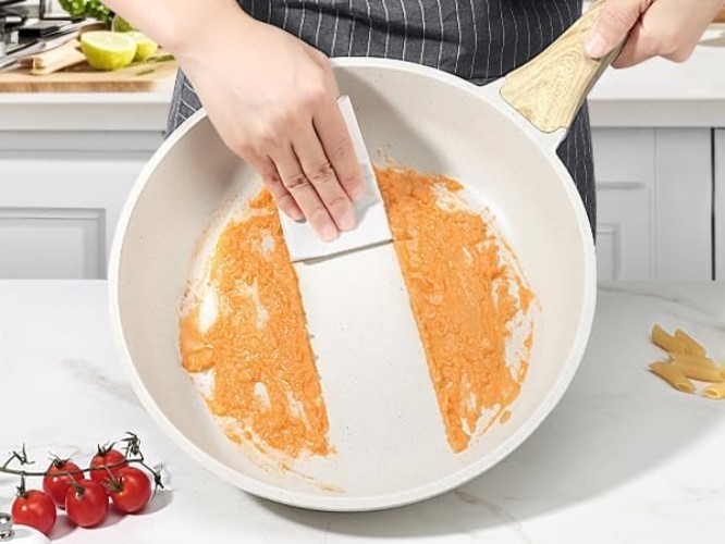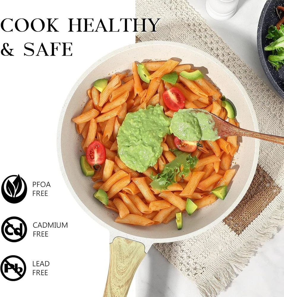 This pan is a game-changer! The nonstick surface works like a dream—eggs slide right out, and cleanup is a breeze. The lid keeps heat in for perfect simmering, and it works on any stove. Lightweight yet sturdy, it’s become my go-to for quick meals. Love that it’s eco-friendly too!