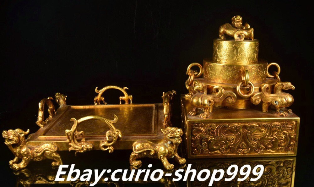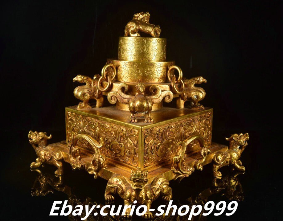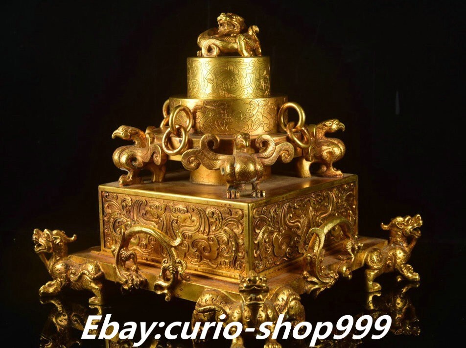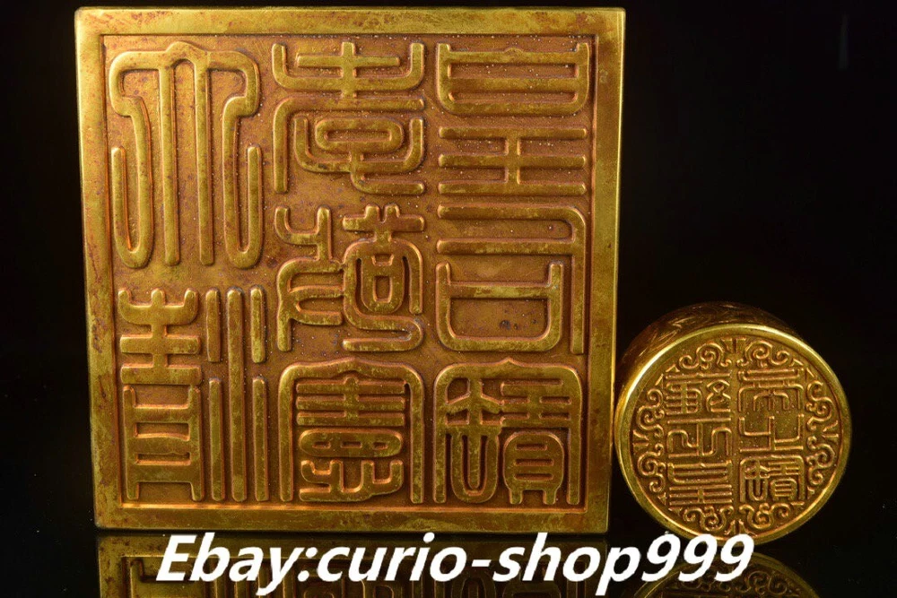 **** Welcome to our antique & Collectable Shop : Porcelain**** Description: Here is 9.6" Old China Pure Bronze Gold Dragon Beast Phoenix Bird Seal Signet Set. It is in good condition, and was created by skilled craftsmen in traditional style with fine handcrafts.This is a great piece of valuable collection, a valuable personal alter or a very good present. the handwork is very fine with incredible detailling. Don't miss out this chance to get it.Wish you good luck! . Material : Pure Bronze Gold Style : Same as photos showing Style : Heigh t 8.6 Long 9.6 B readth 9.6 (inch) Condition Perfect Condition. Perfect, with no scratches, flaws or repairs. Weight: 45 KG----included the weight of packing materials Shipping cost to all over the world countries in Free Honored Customers: We are selling the collectibles products and crafts in Beijing ,China since 1993 and collected them all over the world all the time . In our shop the bronze sculpture, animal, vase, urn, flowerpot,Incense Burner.Table chair sets. Militaria goods. buddha statues, Bodhisattva Statues, Buddhist Ritual Items etc is our speciality .Many of the items we sell come from our own personal collection and have been in our family for a very long time .My great-grandfather was the first in this family to start collecting art & antiques when he still lived in San Xi and Tibet around 1922 ,some of the paintings he once collected can now be seen in museums around the globe.We won't make money from t he shipping cost, if you dislike the item when you receive it,we can refund all of your money to you within thirty days. Please confidence for bidding . We recommend the combine shipping and offer you an big price discount if you order more items together ! 2024.05.25 四 号