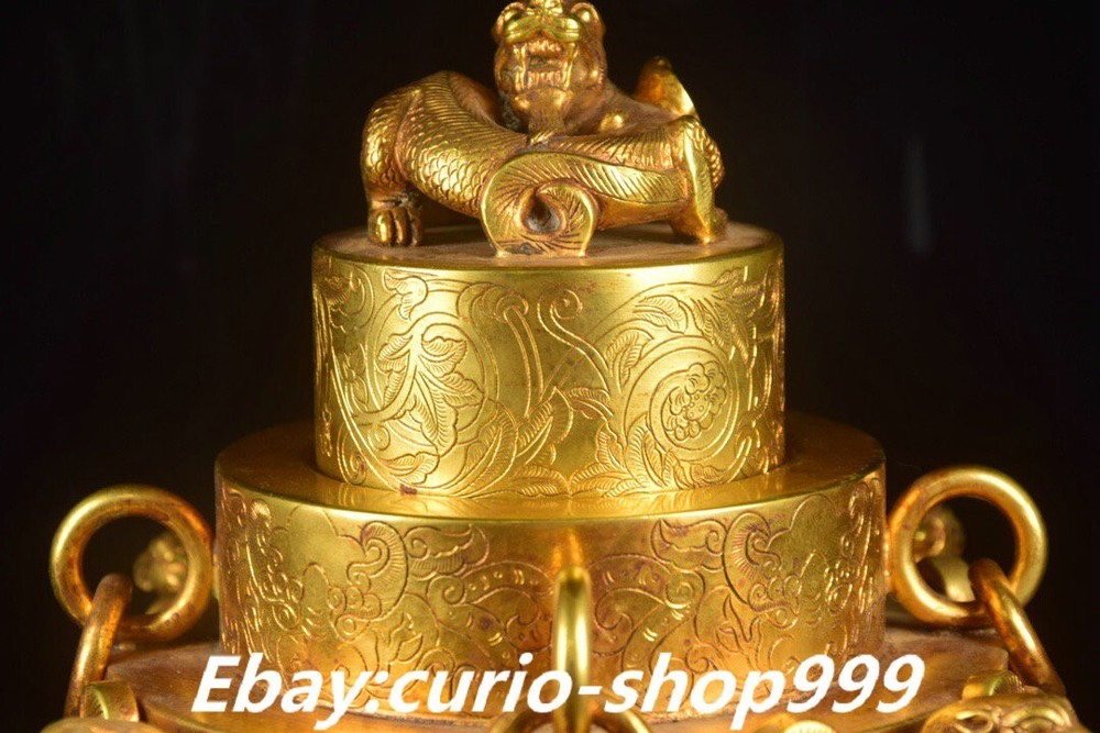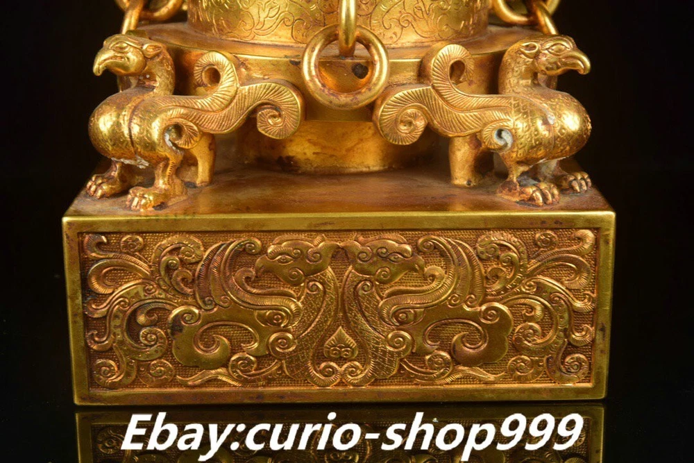 $ 23.763 Inch China Dynasty Copper Gold Dragon Beast Imperial Seal Stamp Signet