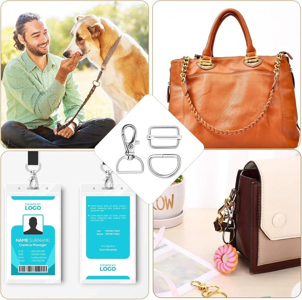 96 Pieces Swivel Clasps with D Rings and Slide Buckles Set Lanyard Snap Hooks Ke