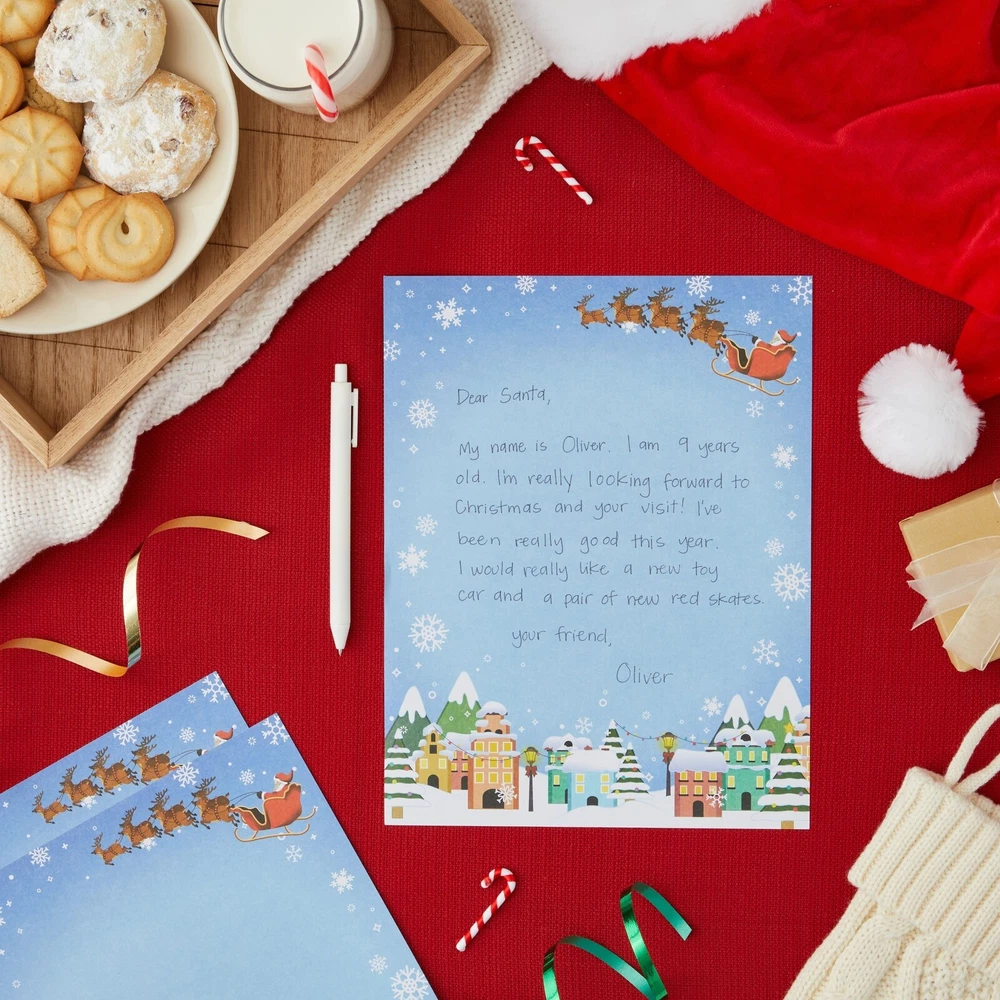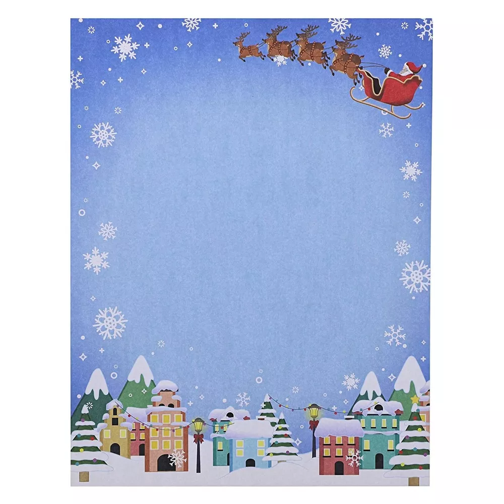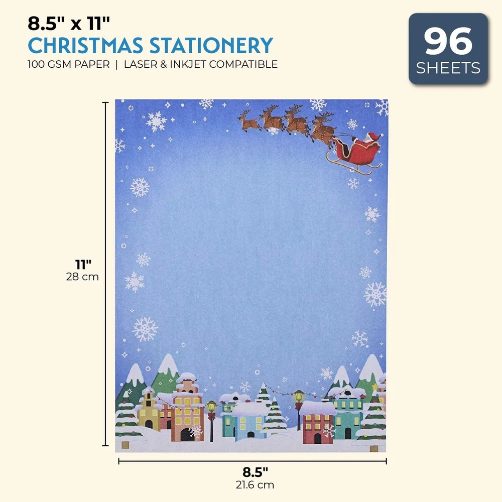 AccStation This set of 96 holiday printer paper 8.5x11 is perfect for adding a personal, festive touch to your holiday correspondence. Whether you're creating custom party invitations, thank you notes, or save-the-date announcements for an upcoming Christmas party, this decorative winter wonderland design of the christmas note paper is sure to impress. Each christmas border paper sheet measures 8.5 x 11 inches, providing ample room for adding stickers, stamps, or even photo prints. The versatile design of the christmas stationery paper makes it ideal for both handwritten letters and greeting cards. Plus, the paper of the christmas letter stationery is printer-friendly and compatible with most printers, allowing you to easily create unique designs directly from your computer or laptop. Whether you're going for a traditional or modern look, the winter wonderland theme of the christmas paper for printer adds a charming, seasonal touch to all your holiday communications. With 96 holiday printing paper sheets included in the set, you'll have more than enough to cover all your festive needs, ensuring that your greetings are as special as the season itself. 96 Sheet Christmas Stationary Paper 8.5 X 11 for Printer Writing Letters, Santa Cute Stationery: Add a decorative and personal touch to your party invitations, greeting cards, or handwritten letter with this christmas stationary set that includes 96 sheets of blue paper Easy Customization: Each sheet of santa stationary paper features a cityscape at the bottom, Santa in his sleigh, and snowflakes printed along the border; use the sizable space to add text, pictures, drawings, and heartfelt messages Printer-friendly: Each christmas printer paper 8.5x11 sheet measures 8.5 x 11 inches and is compatible with both inkjet and laser printers: simply create your design and print Reliable Quality: The personalized santa paper stationery has single-side printing on the front and is blank on the backside; use pens, marker, stamps, or paint to create a unique and personalized message for your friends and family 96 Sheets of Holiday Stationery: With 96 festive christmas writing paper, you’ll have plenty to send warm greetings to all your loved ones, adding a personal touch to every card, letter, or note this holiday season.