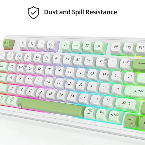 96% Silent Wireless Gaming Keyboard with Number Pad in White Green Design