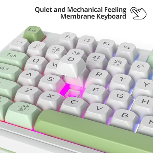 Date First Available: April 9, 2024 Keyboard Description: Membrane Style: Modern Item Length: 16.25 Compatible Devices: Laptop, Gaming Console, PC MPN: Does Not Apply Connectivity Technology: Bluetooth, RF, USB-A UPC: Does Not Apply Item Height: 16.25 gtin13: Does Not Apply Item Width: 5.7 Country of Origin: China Special Feature: Volume Roller, Ergonomic, Backlit, Hotkeys and Media Keys, Rechar Color: WhiteGreen Recommended Uses For Product: Multimedia, Everyday Use, Personal, Education, Student, Gaming, B Batteries: 1 Lithium Ion batteries required. (included) Type: Does Not Apply Manufacturer: Does Not Apply Item Weight: 2.51 pounds Number of Keys: 98 EAN: Does Not Apply Brand: Does Not Apply Keyboard backlighting color support: RGB Product Dimensions: 16.25 x 5.7 x 16.25 inches