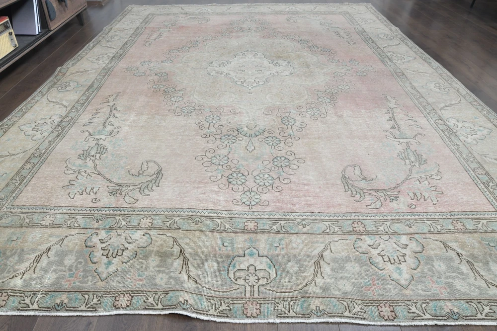 9.4x12.8 ft, OVERSIZED Vintage Turkish Oushak Rug, Faded Red Handmade Wool Rug