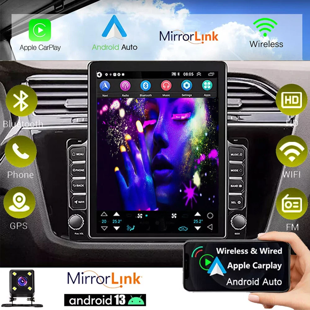 9.7" Android 13 Car Stereo with Apple CarPlay GPS WiFi FM DSP SWC