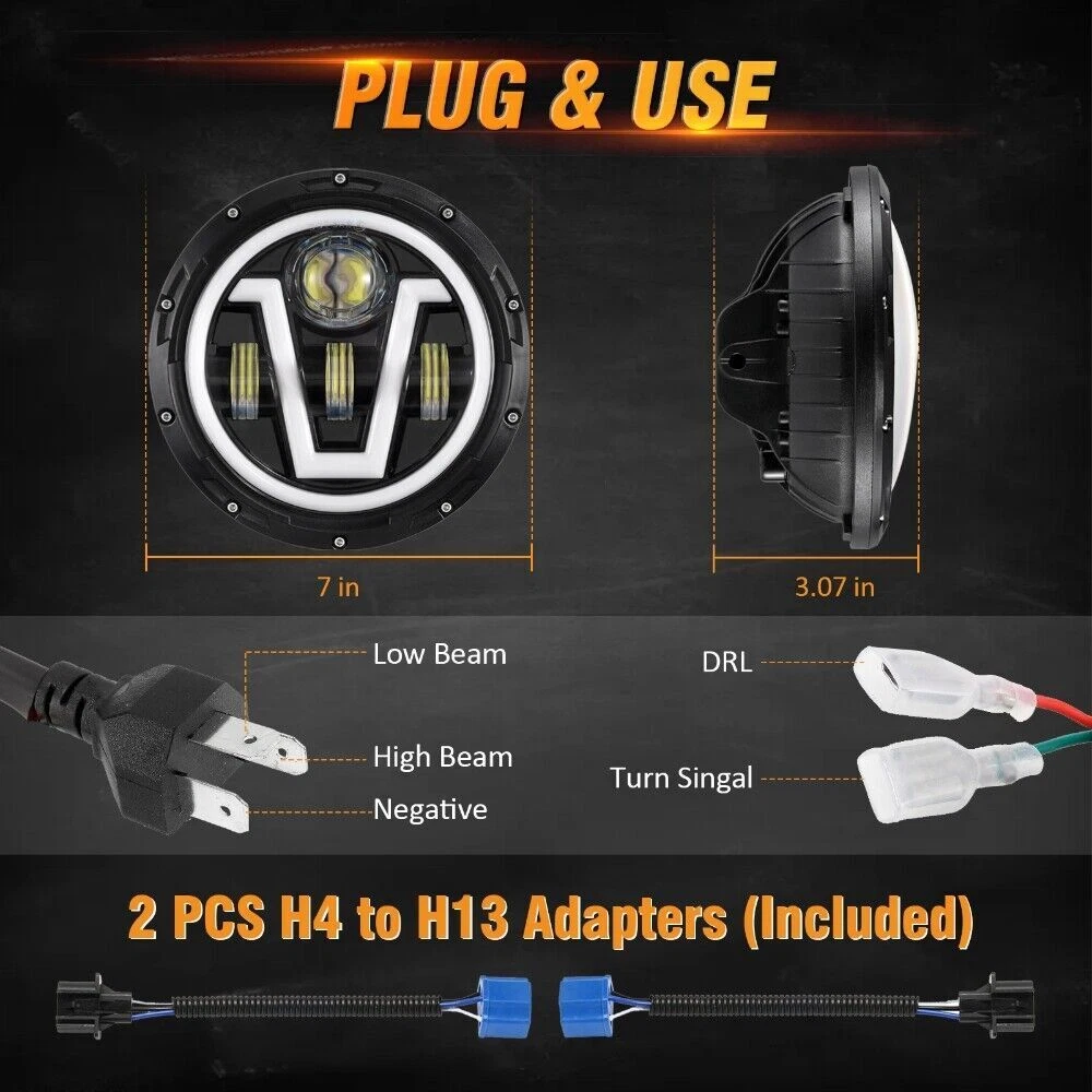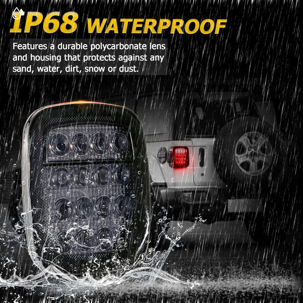 2 x 7 Inch Round LED Headlight Angle Eyes DRL Turn Signal Light For Jeep Wrangler 2007-2017 JK Notice: Note: The tail light can perfectly fit Jeep Wrangler TJ(1997-2006), ( for Jeep Wrangler JK)You need to change the hole yourself ,Professional installation is highly recommended if you have any difficult in installation. Please check whether it is fit for your vehicle before purchase. Please allow 1-3mm in size deviation due to manual measurement. Due to the light and shooting angle, pictures may have slightly chromatic aberration. Fitment: Fit for Jeep Wrangler TJ 2 Door 1997~2006 Fit for Jeep Wrangler LJ unlimited (4 Door) 2004~2006 Fit for Jeep Wrangler JK 2 Door 2 2007~2015 Fit for Jeep Wrangler Unlimited JK 4 Door 2007~2015 Fit for Jeep CJ-8 Scrambler 1981-1985 Fit for Jeep CJ-7 1976-1986 Fit for Jeep Wrangler 1997-2015 Fit for Land Rover Defender 90 1997 Fit for Land Rover Defender 90 1995 Fit for Land Rover Range Rover County Classic Sport Utility 4-Door 1995 Fit for Land Rover 90/110 1983 to 1991 (including 2.5N/A, 2.5 Turbo, V8) Fit for Land Rover 90/110 Defender 200 Tdi Fit for Land Rover 90/110 Defender 300 Tdi Fit for Land Rover 90/110 Defender Td5 Fit for Land Rover 90/110 Tdi Specification: Material: Durable ABS and LED Color: Black Voltage: DC 9-32V Life Span: 50000 hours Dimension: (7 inches) 7.01" x 7.01" x 3.07"(178mm x 178mm x 78mm) Features: 7 inches LED Headlight is Multi- function - can be White or Amber. Amber is for turn signal; white is for DRL. Faster on/off response time, striking warning effect to enhance driving safety. Weatherproof, low power consumption, long lasting. Simple installation - Plug & Play. 2Pcs 16LED Dual Color Trailer Taillight Turn Signal Brake Light Driving Light Red White Light for Wrangler Features: - Very bright Flux LED. - Epoxy sealed, waterproof. - Function as stop, turn, tail and back up lights. - High light efficiency, low power consumption, energy saving. - Waterproof, Dustproof, Anti-shock & Anti-vibration. - Long lasting, lifespan above 50,000 hours. - Easy Install to different types vehicles. - Acrylic lens is screwed on to the housing. - Features chrome reflector inside the lens which is MUCH brighter and MORE visible from different angle. - Each contains 12 red square LED (stop, turn and tail) and 4 white square LED (back-up/reverse). - Stud Mount, five wires (2 black, 1 red, 1 white and 1 brown). Specification: Material: Plastic Color: Red/White Size: 173x147x32mm Voltage: 12V LED Quantity: 16pcs (4pcs White LEDs and 12pcs Red LEDs) Waterproof rating: IP68 Light source: LED Light source power: 0.06 * 16 (W) Life: 50000 (hours) Function: steering, braking, driving Applicable models: trucks, trailers, trucks, buses, trailers Wire Connection Tips: Black Wire (negative) + Red Wire (Positive), Red light is high brightness Black Wire (negative) + Brown Wire (Positive), Red light is low brightness 2 x Black Wire (negative) + White Wire (Positive), White light works Packing included: 2 x 16 LED Red/White Light 2 x 7 inches Round LED Headlight 2x Wiring Harness Kit