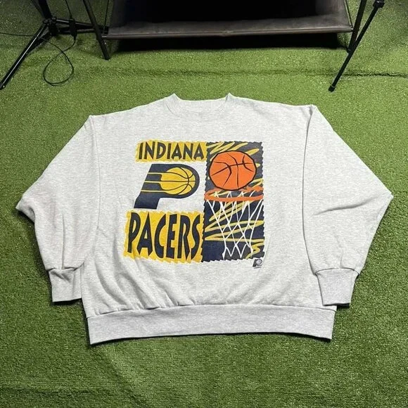 98 Indiana Pacers grey basketball crewneck sweatshirt, reprinted NBA shirt QT117