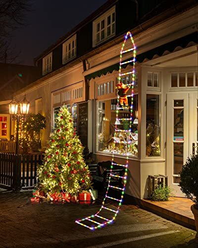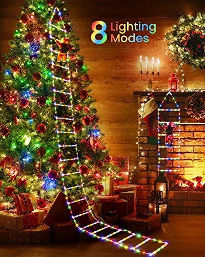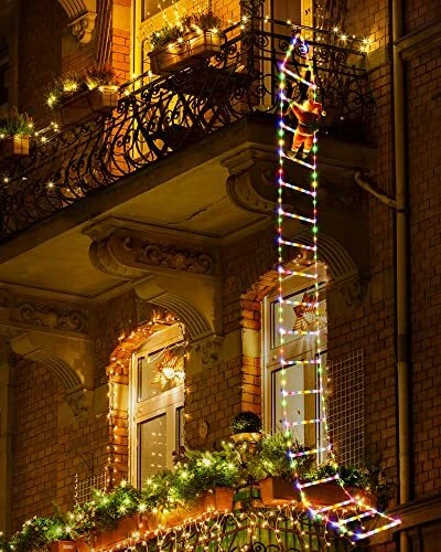 9.8ft Multicolor LED Ladder Lights with Climbing Santa for Christmas Decor