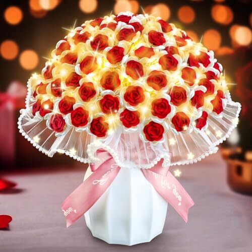 This stunning 99-rose bouquet is absolutely breathtaking! The vibrant red roses look incredibly realistic, and the included vase makes it perfect for any space. Great for Valentine's Day, birthdays, or just to brighten up your home or office. The quality is impressive, and it’s so easy to arrange—no maintenance needed! A beautiful gift that lasts forever. Highly recommend!