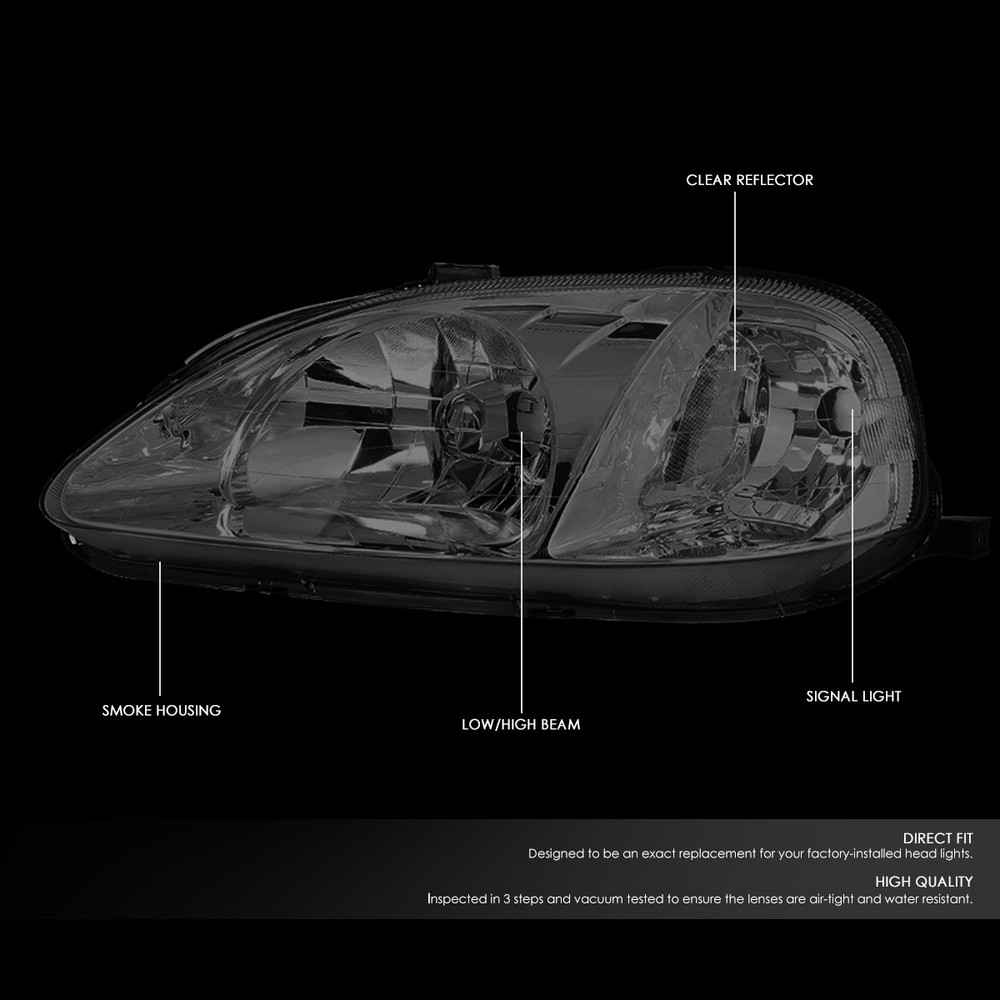 Welcome to Speed Daddy Store Home About Us Feedback Add To Favorites New Arrivals Ending Soon Contact Us SMOKED HOUSING HEADLIGHT+CLEAR CORNER+6000K WHITE LED SYSTEM FOR 99-00 CIVC EJ Product Description A headlight (headlamp) is a lamp attached to the front of a vehicle to light the road ahead. Headlight performance has steadily improved throughout the automobile age, spurred by the great disparity between daytime and nighttime traffic fatalities. Headlights are one of the most important components of your vehicle; they allow you to see the road in front of you clearly during the night and in any bad weather that may arise. Our headlights upgrade the face of your vehicle with clear style and extreme range. LED Lights are far more efficient than their Halogen Counterparts. They out put more light, while generating less heat and consume less power. Also their durability is a lot longer than Halogens. Making this a great upgrade to your vehicles lighting. Specifics and Features : Headlight: Plug-n-Play Operation, Direct Bolt-on OE Fitment or Replacement for the Stock Unit Comes with a Complete Set of Headlight (Driver and Passenger Side) Brings a Different Appearance to the Vehicle that Great for Show Use or to Replace Old and Worn Headlights Requires no Modification or Drilling LED Headlight Conversion Kit: Copper Heatsink with Aluminum Cooling Fins Super Bright LEDs output More Lumens Compared to Halogen Bulbs IP65 Waterproof for Increased Longevity Extremely Long Lasting Life High & Low Beam Operation Low Power Consumption 12-Volt Operation. Up to 20,000 Hours Lifespan Includes : 1 X Set of Headlights 1 X LED Headlight Conversion Kit (Left & Right) Hardwares as Shown in the Picture Above Notes : Compatible with: 99-00 Honda Civic 100% Brand New Professional Installation is Highly Recommended Installation Instruction is NOT Included Shipping Payment Returns Terms & Conditions Feedback Contact Us DOMESTIC LOWER 48 US STATES: FREE SALES TAX: CA ONLY VERY IMPORTANT: Double check shipping address. We are not responsible for incorrect or undeliverable addresses. Please use Shipping & Payments tab on top of page for shipping details for your location. Shipping to PR, HI, AK and PO Box addresses will be charged the same as shipping to Canada. GU, VI, SAIPAN will be charged the same as international shipping rate. For Canada shipping please select the lowest price. We do not offer expedited shipping. US Territories such as GU, VI, SAIPAN will be charged the same as CANADA shipping rate. Transaction will be held until a full shipping amount received. Some of the packages cannot be delivered to a PO Box. Customer is responsible to ensure PO Box address given is deliverable by the shipping company. Package will be held until a valid physical address is provided. Customer assumes shipping charges incurred in shipping to undeliverable address. International buyers are responsible for all customs duties, taxes, and other applicable fees incurred by the country's customs/border regulations. Please contact customs for more information. We ship 98% of all orders the same or next business day after payment received/cleared. Please understand that once orders are shipped, we cannot control the transit times thereafter. Most orders will ship via USPS First Class/Priority Mail or FedEx/UPS or the best suitable carrier for the specific size of the product. We are not responsible for any changes to address after item has been shipped. Item will be shipped out within 24 hours after payment cleared, except for weekends and holidays. PayPal e-check takes 3-7 business days to be processed. We will not ship until an e-check has been cleared. 30 Days Free Returns, please notify us within 30 days after you've received your order. Please email us or call us to obtain a RMA (Return Merchandise Authorization) number from us, and have the RMA number written on the return package. Items to be returned must be in resalable condition. All returns are for refund ONLY. No exchange accepted. For emissions related items, please check with your local jurisdiction for emission specific requirements before purchasing. All items do not come with installation instruction unless otherwise specified. If item is questionable, please consult your local professional/mechanic before making purchase. Shipping DOMESTIC LOWER 48 US STATES: FREE SALES TAX: CA ONLY VERY IMPORTANT: Double check shipping address. We are not responsible for incorrect or undeliverable addresses. Please use Shipping & Payments tab on top of page for shipping details for your location. Shipping to PR, HI, AK and PO Box addresses will be charged the same as shipping to Canada. GU, VI, SAIPAN will be charged the same as international shipping rate. For Canada shipping please select the lowest price. We do not offer expedited shipping. US Territories such as GU, VI, SAIPAN will be charged the same as CANADA shipping rate. Transaction will be held until a full shipping amount received. Some of the packages cannot be delivered to a PO Box. Customer is responsible to ensure PO Box address given is deliverable by the shipping company. Package will be held until a valid physical address is provided. Customer assumes shipping charges incurred in shipping to undeliverable address. International buyers are responsible for all customs duties, taxes, and other applicable fees incurred by the country's customs/border regulations. Please contact customs for more information. We ship 98% of all orders the same or next business day after payment received/cleared. Please understand that once orders are shipped, we cannot control the transit times thereafter. Most orders will ship via USPS First Class/Priority Mail or FedEx/UPS or the best suitable carrier for the specific size of the product. We are not responsible for any changes to address after item has been shipped. Payment Item will be shipped out within 24 hours after payment cleared, except for weekends and holidays. PayPal e-