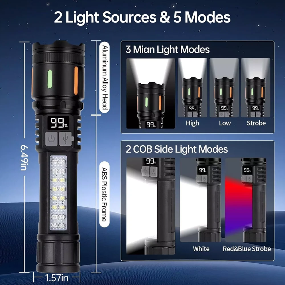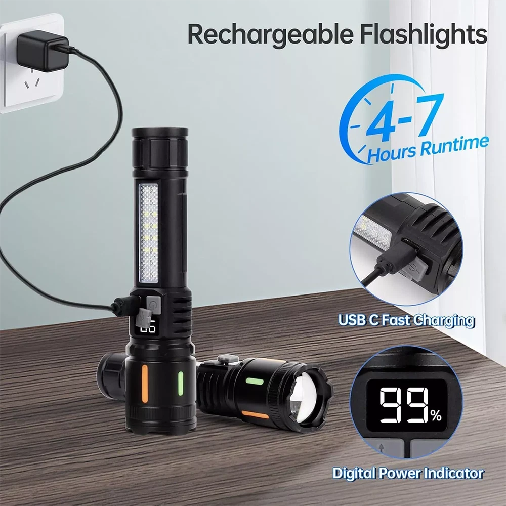 Pshcanyin DESCRIPTION PAYMENT SHIPPING RETURN POLICY CONTACT US 99000000 Lumens Super Bright LED Tactical Flashlight Work Light Rechargeable 2X Features: 1.Power Display: This white laser flashlight comes with an integrated power display, allowing you to monitor the battery life in real time. Stay informed about the battery status to ensure timely recharging and avoid the inconvenience of unexpected power outages. 2.Advanced Bead Design: Featuring a specialized bead design and advanced optics, our strong light flashlight delivers a powerful, focused beam. It concentrates light into a potent spot for far-reaching illumination, ideal for outdoor uses. 3.Luminous Patch: Equipped with a glow-in-the-dark patch, this telescopic focus torch absorbs light during the day and emits a soft glow at night, making it easy to locate while also adding a decorative touch. 4.High-Capacity Battery: With a large-capacity battery, this high power flashlight provides sustained power for prolonged usage. The need for frequent charging is eliminated, offering you a lasting lighting experience for all your needs. 5.Type-C Charging: The inclusion of a Type-C USB charging port makes powering up this zoomable flashlight more convenient and efficient. Charge it using any Type-C compatible device, from power adapters to computers, simplifying your charging routine without the need for additional chargers. Specification: Origin: Mainland China Main Body Material: Aluminum Alloy + ABS (The Head Is Aluminum Alloy, The Rest Is ABS) Color: Black Size: About 15.3cm (6.02in)*3.6cm (1.42in)*3.6cm (1.42in) Net Weight: About 118g Bulb: 10w LED + SMD LED (8 White + 4 Blue 4 Red) Gear: Strong Light - Weak Light - Flashing - Smd White Light - Red And Blue Light Flashing Lumen: 500lm Battery: 1200mah 18650 Battery Charging Method: Type-C USB Charging Zoom Mode: Telescopic Zoom Packages: 2*Flashlight 2*USB Charging Cable (Black Or White Will Be Shipped Randomly) Note: Due to the different monitor and light effect, the actual color of the item might be slightly different from the color showed on the pictures. Thank you! Please allow 1-2cm measuring deviation due to manual measurement. Item Specifics Brand : Unbranded Color : Black Features : Batteries Included Handheld Rechargeable Waterproof With Wrist Strap Item Length : 15.3cm Item Weight : 400g Item Width : 3.6cm Lighting Technology : LED Material : Plastic Power Source : Battery Type : Flashlight Payment Shipping Returns Contact Us 1.We only accept PayPal. 2.Please double check your shiping address before payment,thank you. 1.We ship to your eBay or Paypal address. Please make sure your eBay and Paypal address is correct before you pay. 2.Item will be dispatched within 1-2 business days after receipt of full payment. 3.Items located in AU,Delivery time depends on destination and other factors 1.If the item you received is faulty, damaged or incorrect, or any further problems, you can return it for replacement or refund, please contact our customer service on eBay within 30 days from item received. 2.For damaged items on arrival, please contact us immediately, sending us an email with a photo is preferred. We will offer solutions to such cases. Full refund or replacement will be guaranteed. If you have any questions,please feel free to contact us,thank you. All rights reserved. Shop Category Store Home Fairy Lights Kitchen Supply ◈ Cake Decorations ◈ Food Storage Door Knobs Beauty Other Hot Item 10x T Bar Knob Stainless Steel Kitchen Cabinet Pulls Cupboard Door Handle Drawer USD 6.99 500 4x6 Fanfold Direct Thermal Shipping Labels Blank for Zebra and Rollo Printer USD 15.49 4 Pack Vacuum Seal Bags Roll 8”x50’ Embossed Food Saver Sealer Storage Bag 4 Mil USD 33.86 10Pcs Crystal Glass Clear Door Knob Drawer Cabinet Furniture Kitchen Handle Pull USD 9.91 200 Quart Size Vacuum Seal Bags 8x12 Embossed Food Saver Sealer Storage Bag 4Mil USD 32.80 Delivery New List Item 2Pack LED Solar Power Wall Light Outdoor Garden Waterproof Fence Deck Steps Lamp USD 12.99 100x Clear Packing List Pouches 7.5 x 5.5 Shipping Label Envelopes Self Adhesive USD 8.99 USB Car Adapter FM Transmitter Bluetooth AUX Radio Handsfree MP3 Music Player USD 14.80 1-2x Adjustable Plant Grow Lights 80LED Warm Full Spectrum w/Timer 4Head Indoor USD 32.99 2X Electric Salt and Pepper Grinder for BBQ Restanrant Home Kitchen Rechargeable USD 28.70 Help & Info Payment Policy Shipping Policy Return Policy FAQ About Us